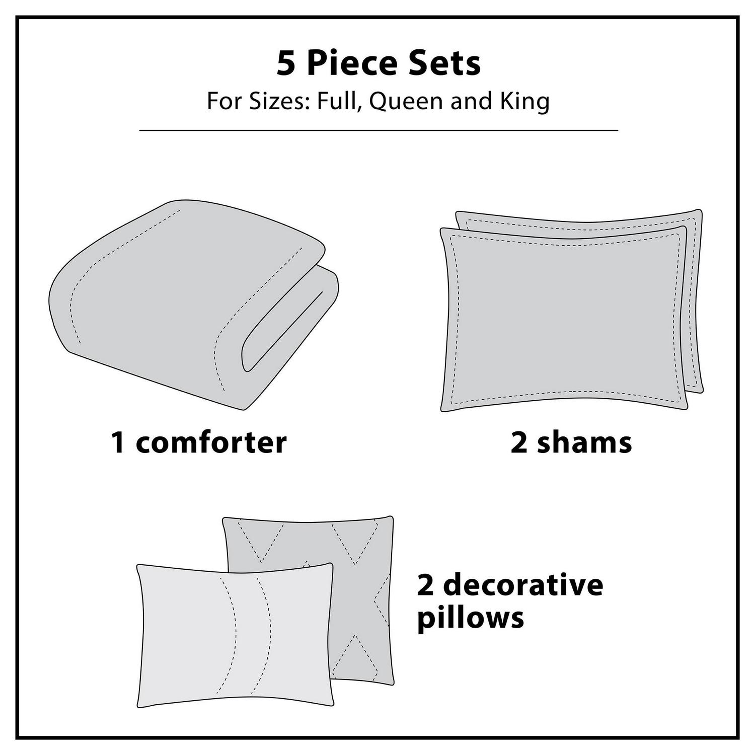- Items Included: Comforter; Pillow Shams; Decorative Pillows
