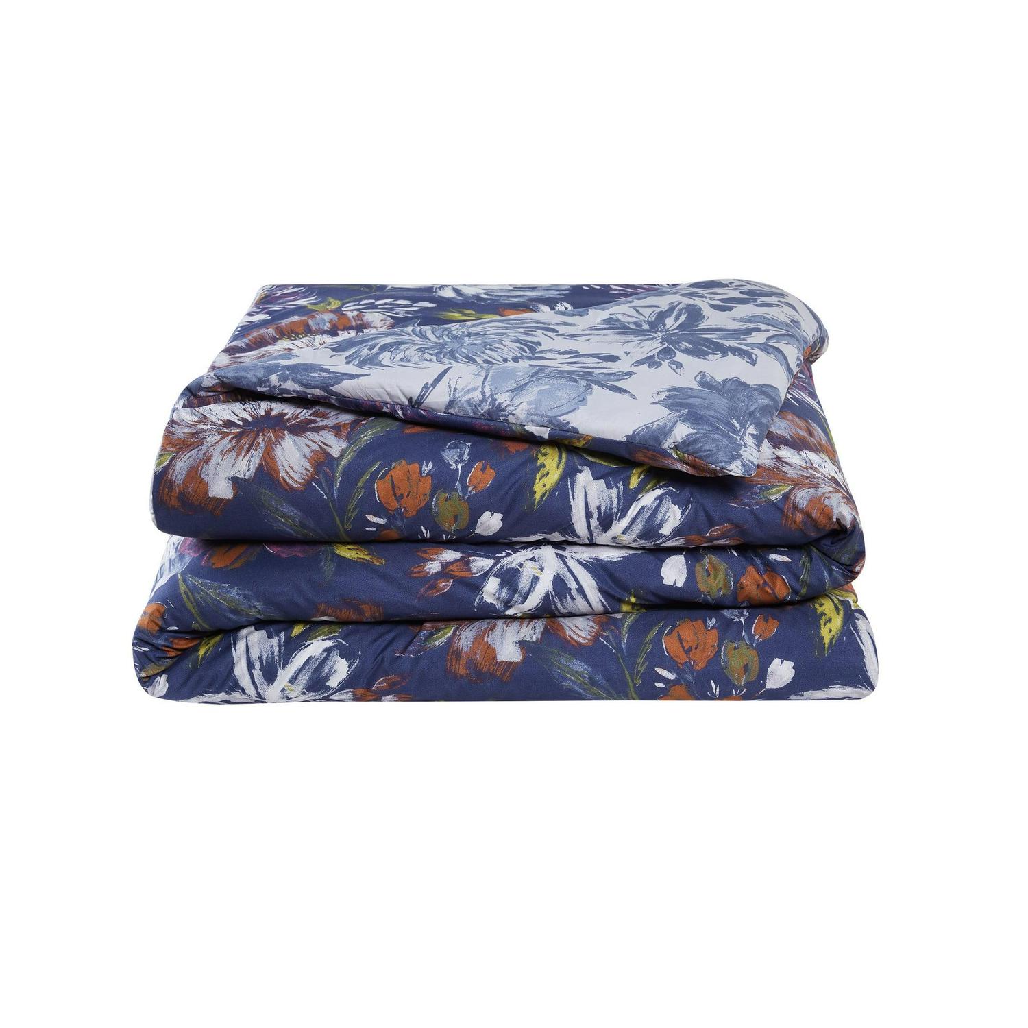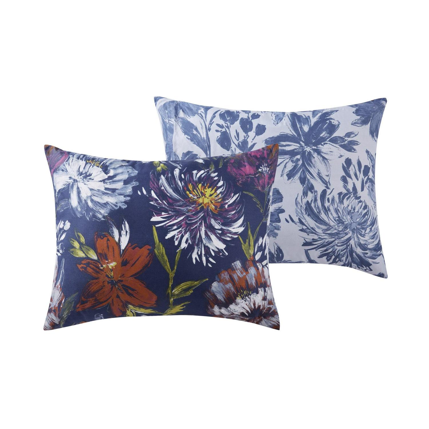 Add fresh flowers to bedroom décor with the VCNY Home Danny Reversible Blue Floral Comforter Set. This reversible comforter set features two sides of stunning floral prints , with rust, burgundy, and white flowers on a navy-blue background on the front and muted blue florals on the other so you can mix, match, and create a look of your own. The 5-piece bed set includes a comforter, decorative shams, and two coordinating decorative pillows to complete the look. This VCNY Home bed set for all adults is made with soft, durable, and lightweight polyester microfiber material and is machine washable. You can keep the bedding looking and feeling fresh by machine washing them in cold water and drying them on a low setting. The decorative pillows are spot clean only.