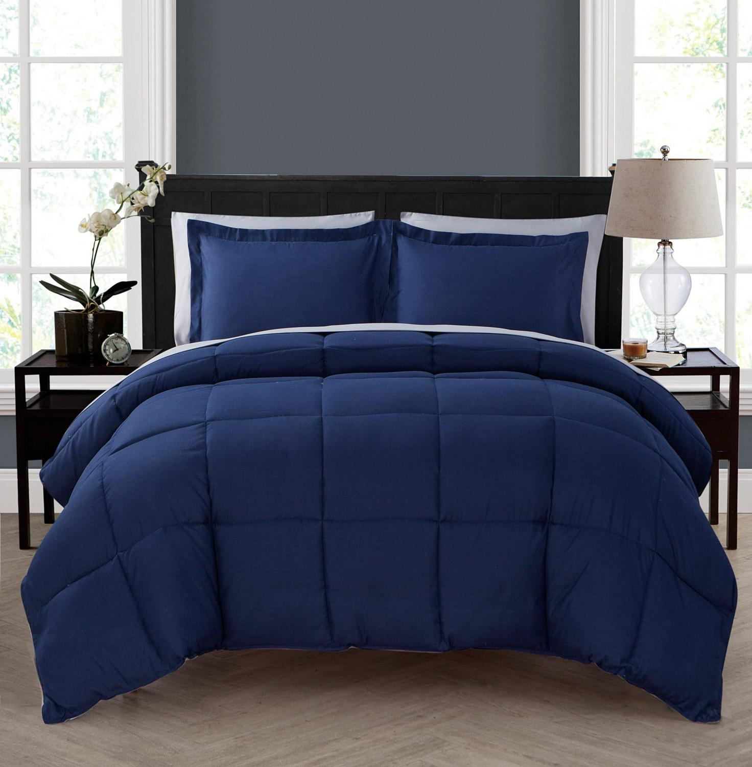 VCNY Home Lincoln 7-Piece Navy/Grey Solid Reversible Bed in a Bag, Queen