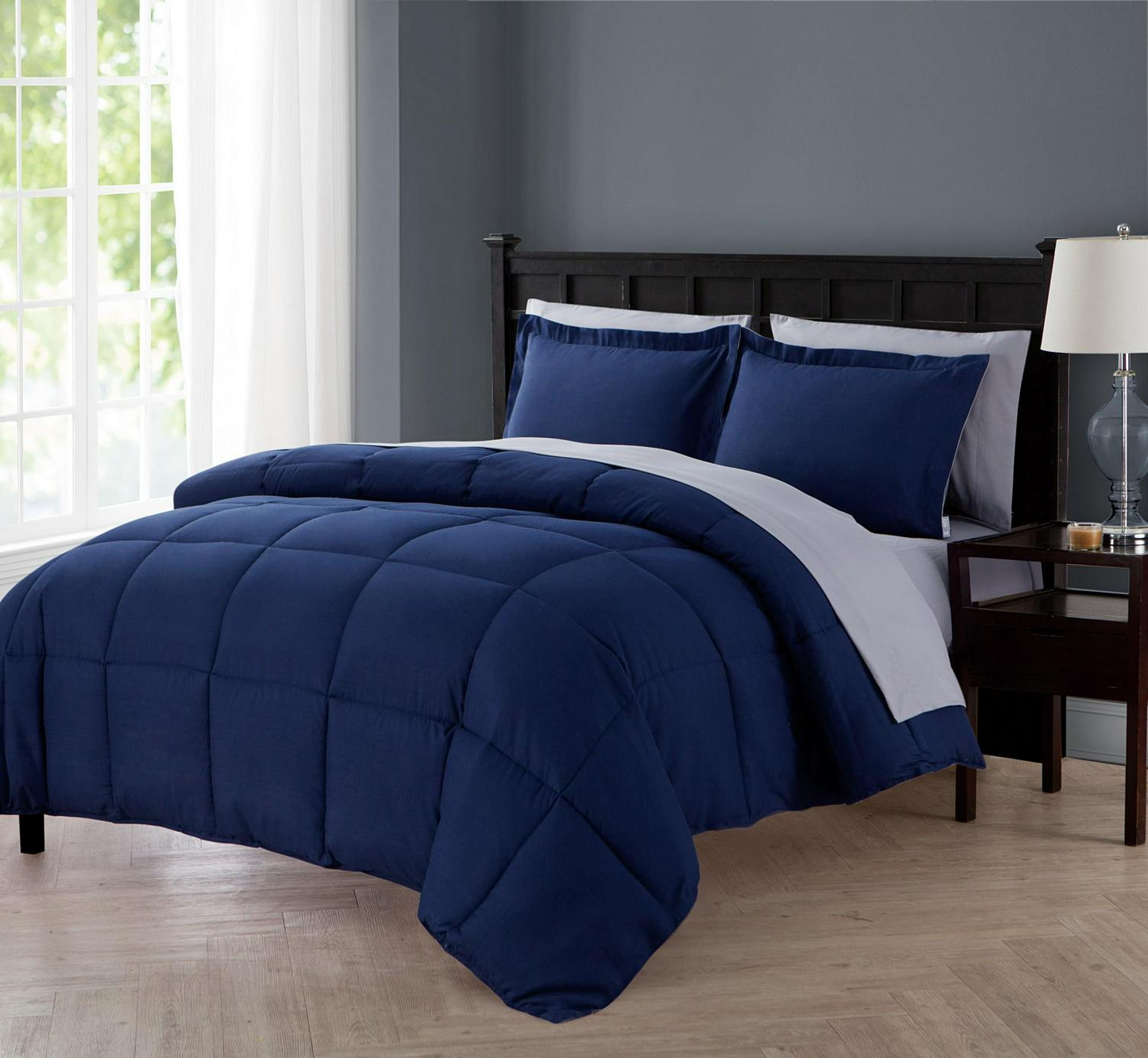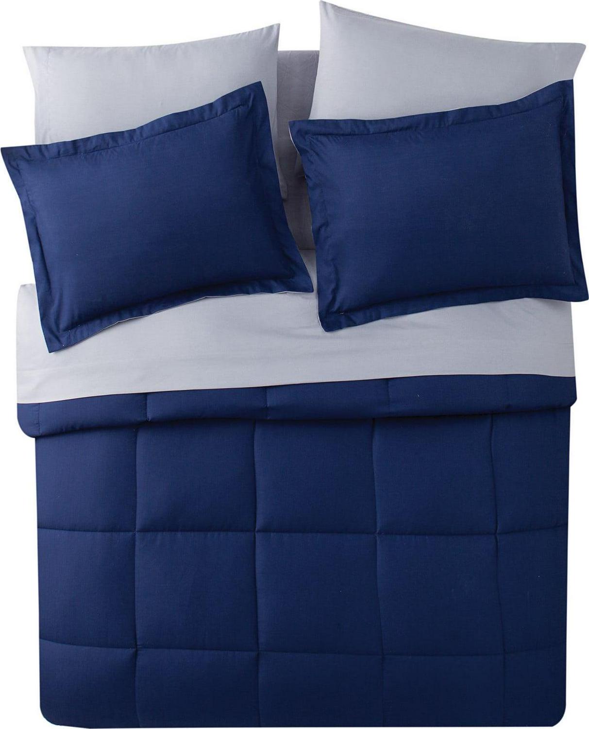 Rest easy with the Lincoln Down Alternative Reversible Bed-in-a-Bag Comforter Set, which features two sides of contrasting solid colors for a versatile, mix-and-match look. Made of soft microfiber, the 7-piece complete bed set includes a reversible comforter, shams , pillowcases, fitted and flat sheets for a complete bed translation in minutes.