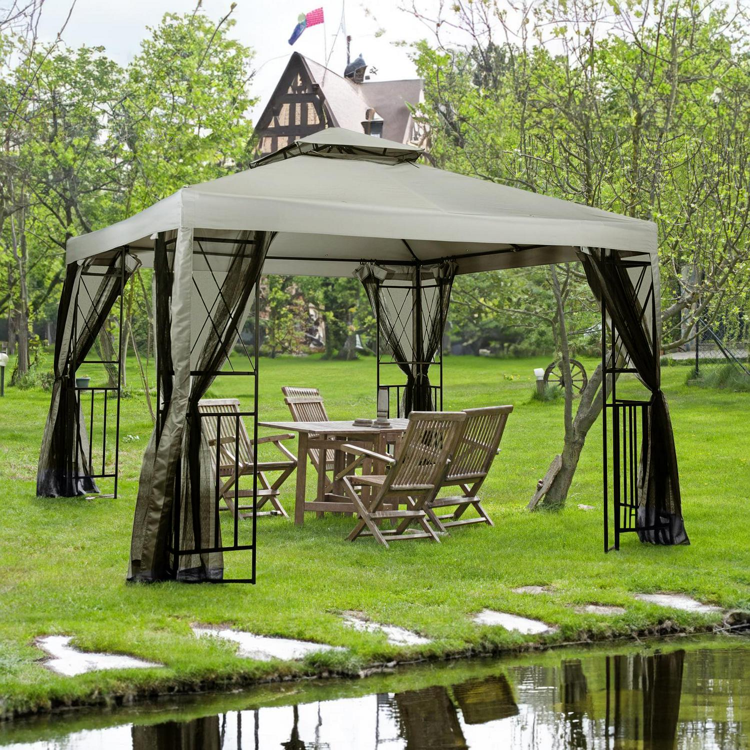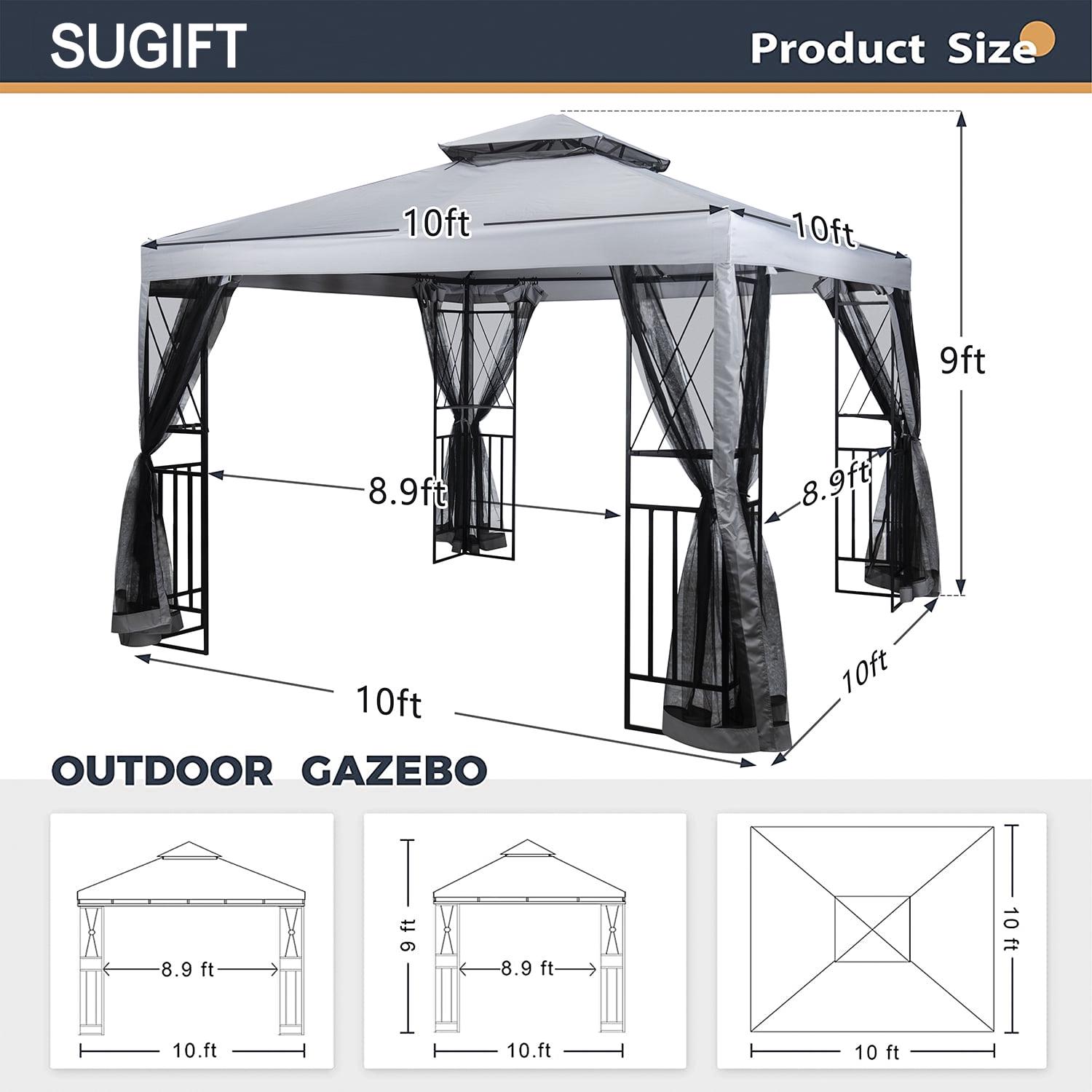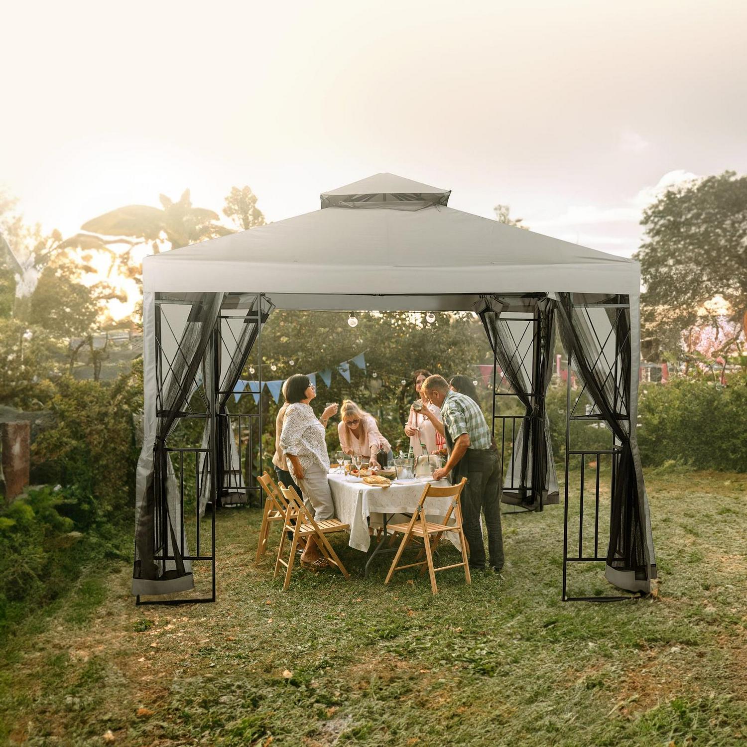Vebreda 10′ x 10′ Patio Gazebo with Mosquito Netting, Gray