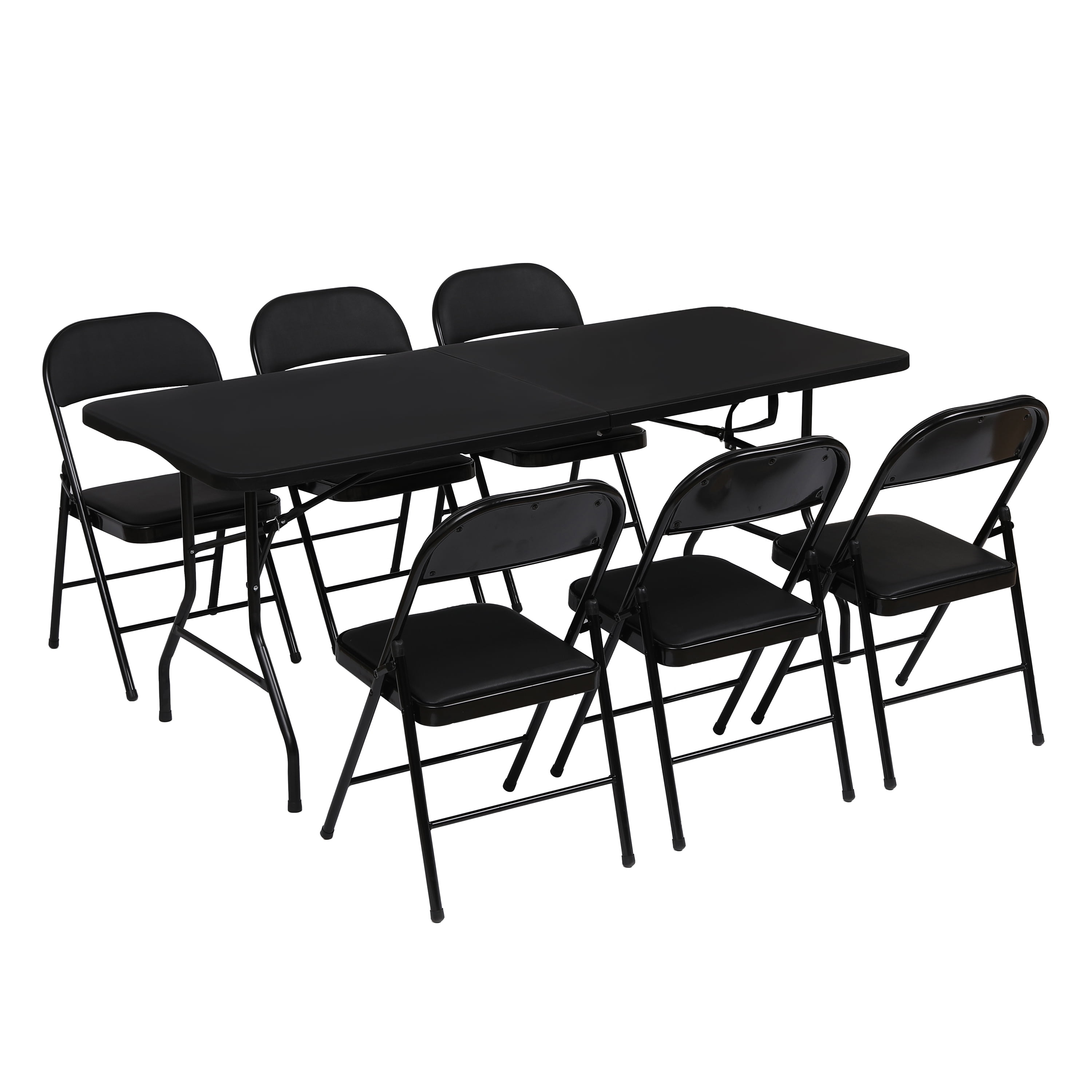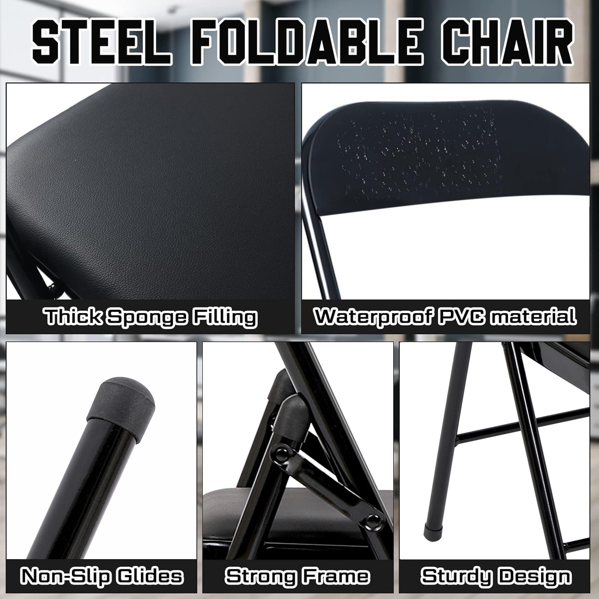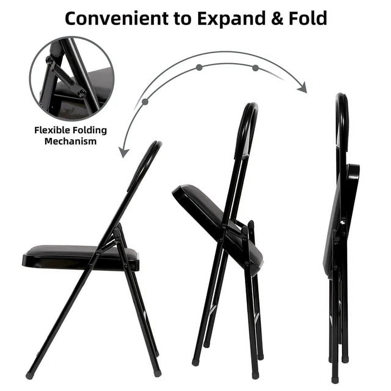 Vebreda Folding Chair Vinyl Padded Seat Metal Frame Home Office, Black, 4 pack