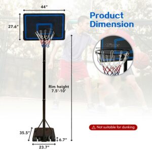 Vebreda 44 Adjustable Portable Basketball Hoop with 7.5 – 10 ft. Height Adjustable for Outdoor Indoor Court, Blue