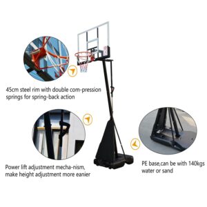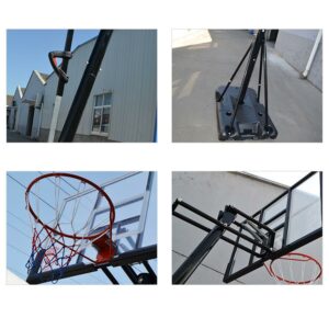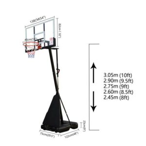 Vebreda 54in Portable Basketball Hoop with Polycarbonate Backboard.Built to withstand endless pickup games in the driveway, this portable hoop system has a durable polycarbonate backboard. Support rod adopts 2.6in steel designed, enough for bad weather and intense games for long-term use. Lift system easy height adjustments from 7.5 ft. to 10 ft. for different ages or heights youth children play. This portable system gets its stability from a 36-gallon base equipped with two wheels. You can wheel this hoop wherever you want to play basketball. This basketball hoop is great for all ages and skill levels! All parts and tools needed for assembly are included, but it’s recommended to use your own tools for quicker assembly. This 54″ portable basketball hoop is a must have for kids, teens, or adults who enjoy the game of basketball, but may have limited space to play. Practice your jump shot, 3 pointer and layups right in your backyard. DO NOT hang on rim. This portable basketball hoop is built to last. Weather and water resistant for all-season use.