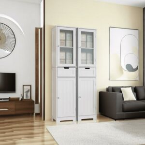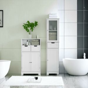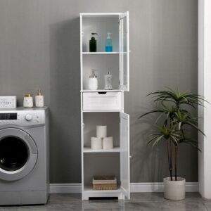Vebreda Bathroom Storage Cabinet Narrow Tall Cabinet with 2 Door and 1 Drawer, White
