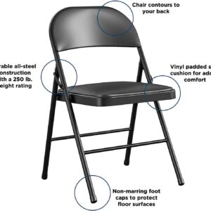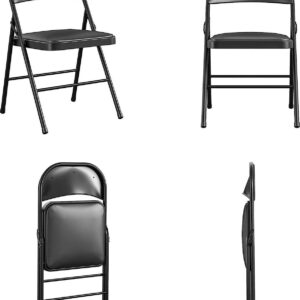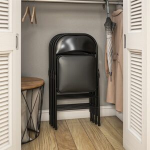 Vebreda Deluxe Vinyl Padded Metal Folding Chair, 6 Pack, Black