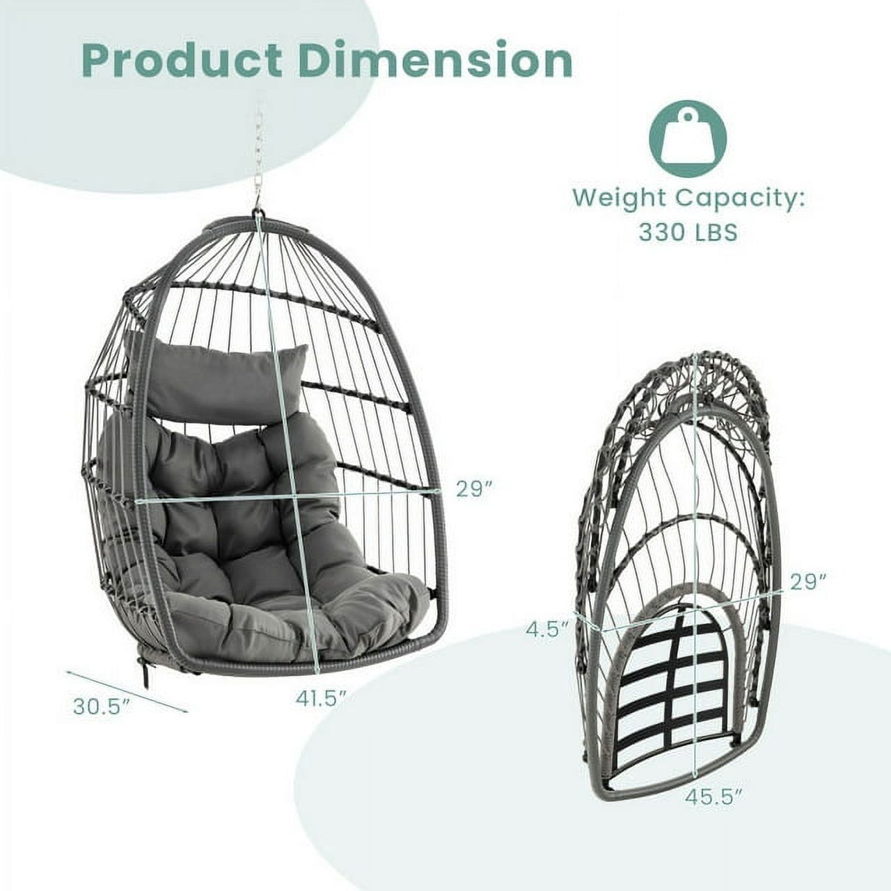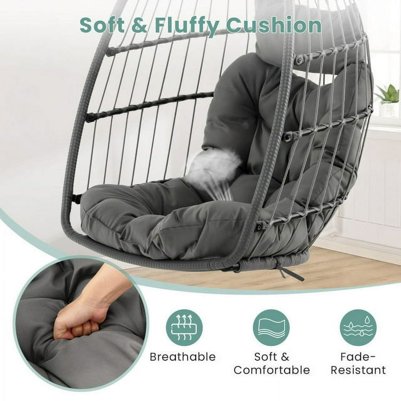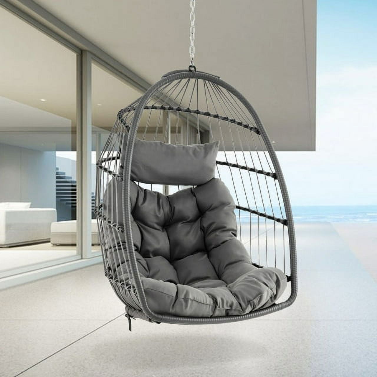 Vebreda Gray Wicker Hanging Swing Egg Chair – Outdoor Patio Seating with Cushion