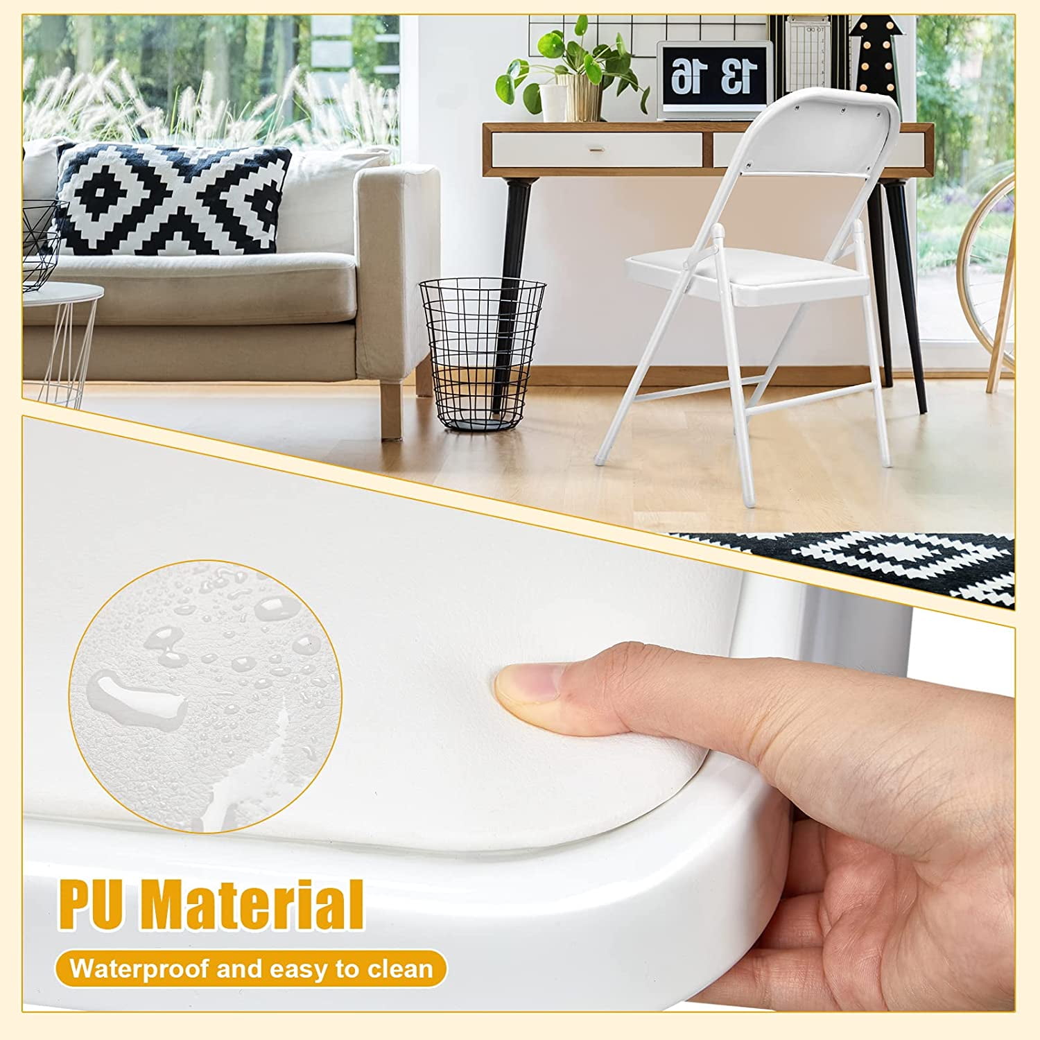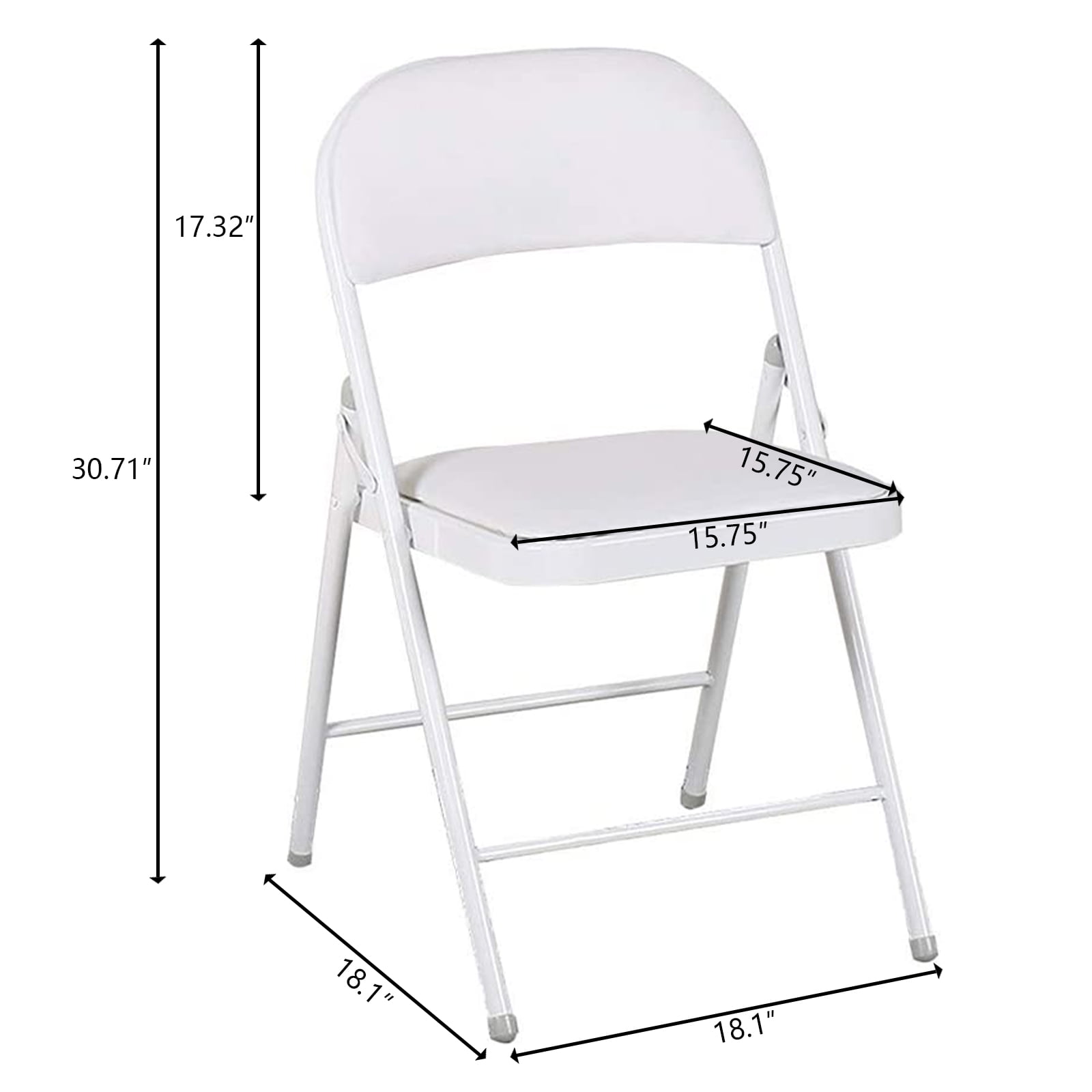Vebreda Folding Chair Vinyl Padded Seat Metal Frame Home Office, White, 4 pack