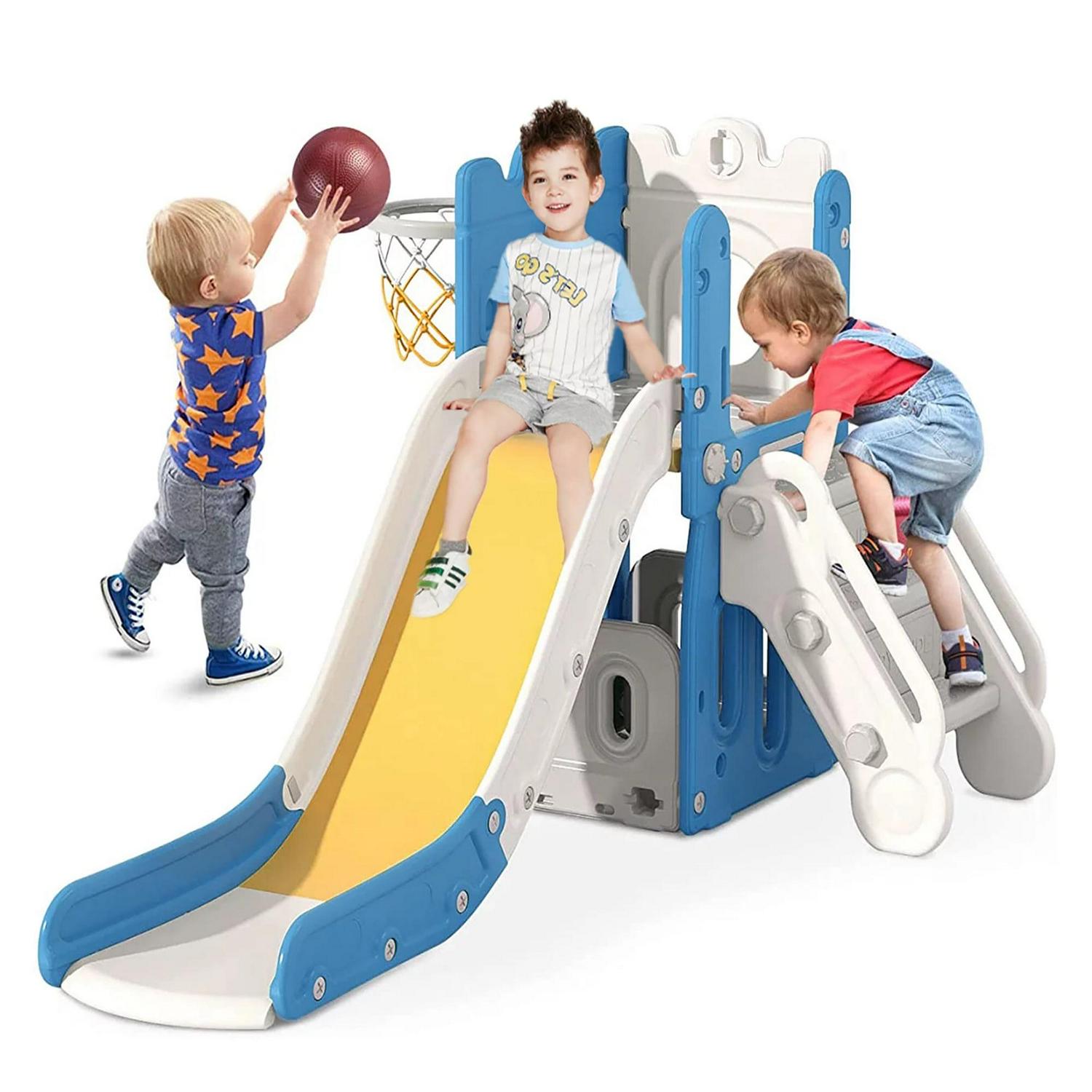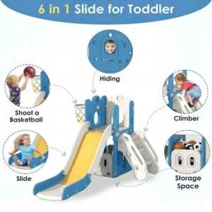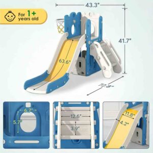Vebreda Kids Slide for Toddlers Age 1-6 Indoor Outdoor Slide and Climbing Playset with Basketball Hoop