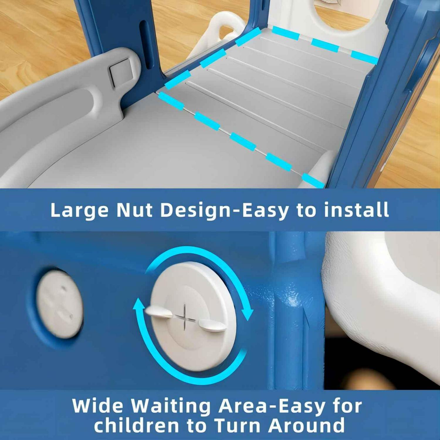– Enclosed Steps – The kids slide has enclosed steps, when kids are climbing, children won’t slip through and get their head stuck between the st air steps, the closed climbing steps ensure the safety of kids effectively