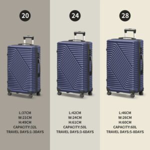 Vebreda Luggage Sets 3 Piece 20/24/28 inch Suitcase Sets Hardside Luggage Set, Navy Blue
