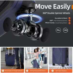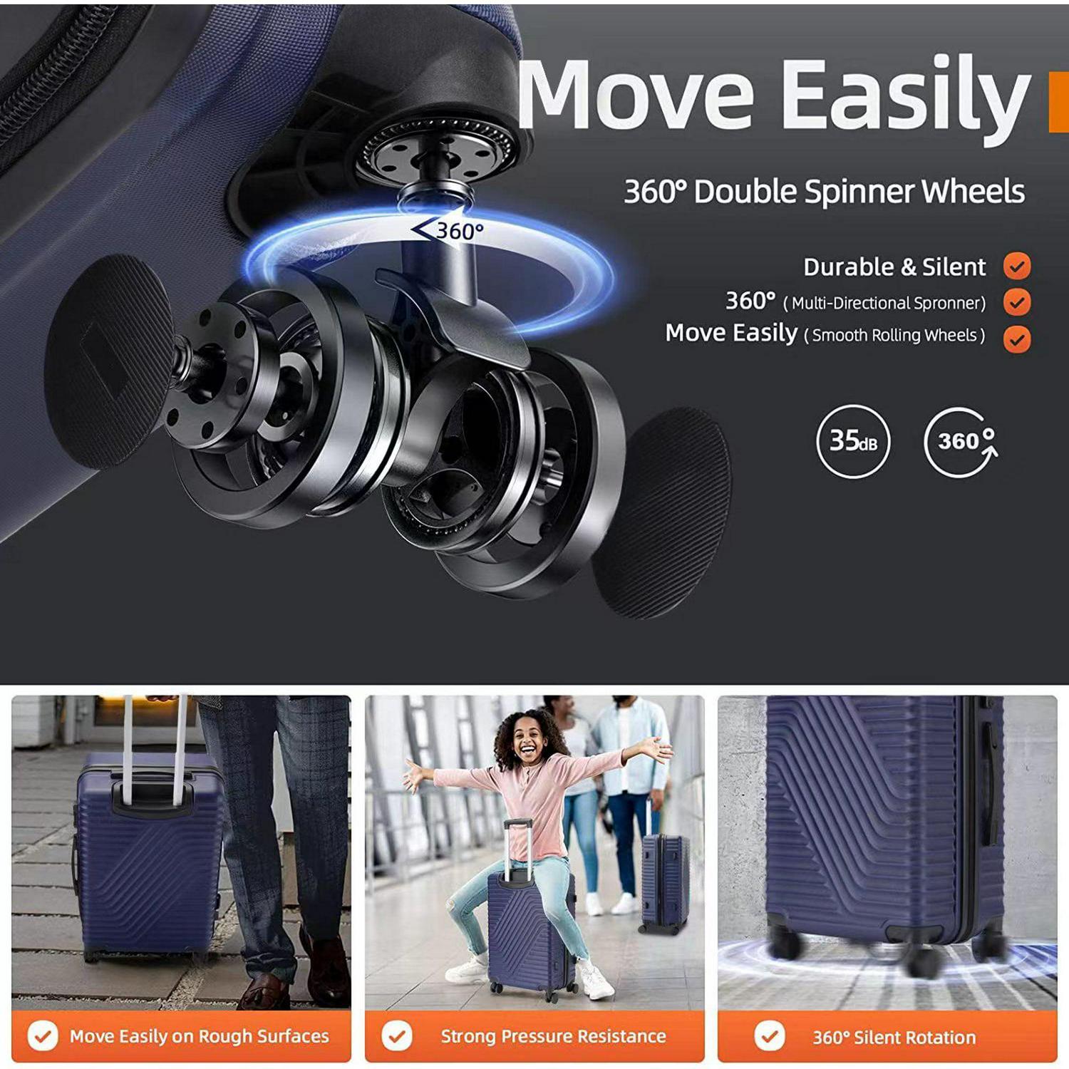 – Telescoping Handle and Double Spinner Wheels: The 3-step telescoping handle goes up and down and fixes quickly with a push button. The luggage set comes with 4 double spinner wheels that can roll 360 degrees smoothly for easy maneuverability at airports and train stations.