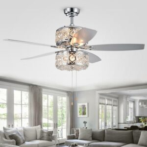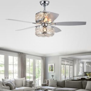 Velko 52-inch 6-light Dual Lamp Lighted Ceiling Fan with Crystal Shade Remote Controlled