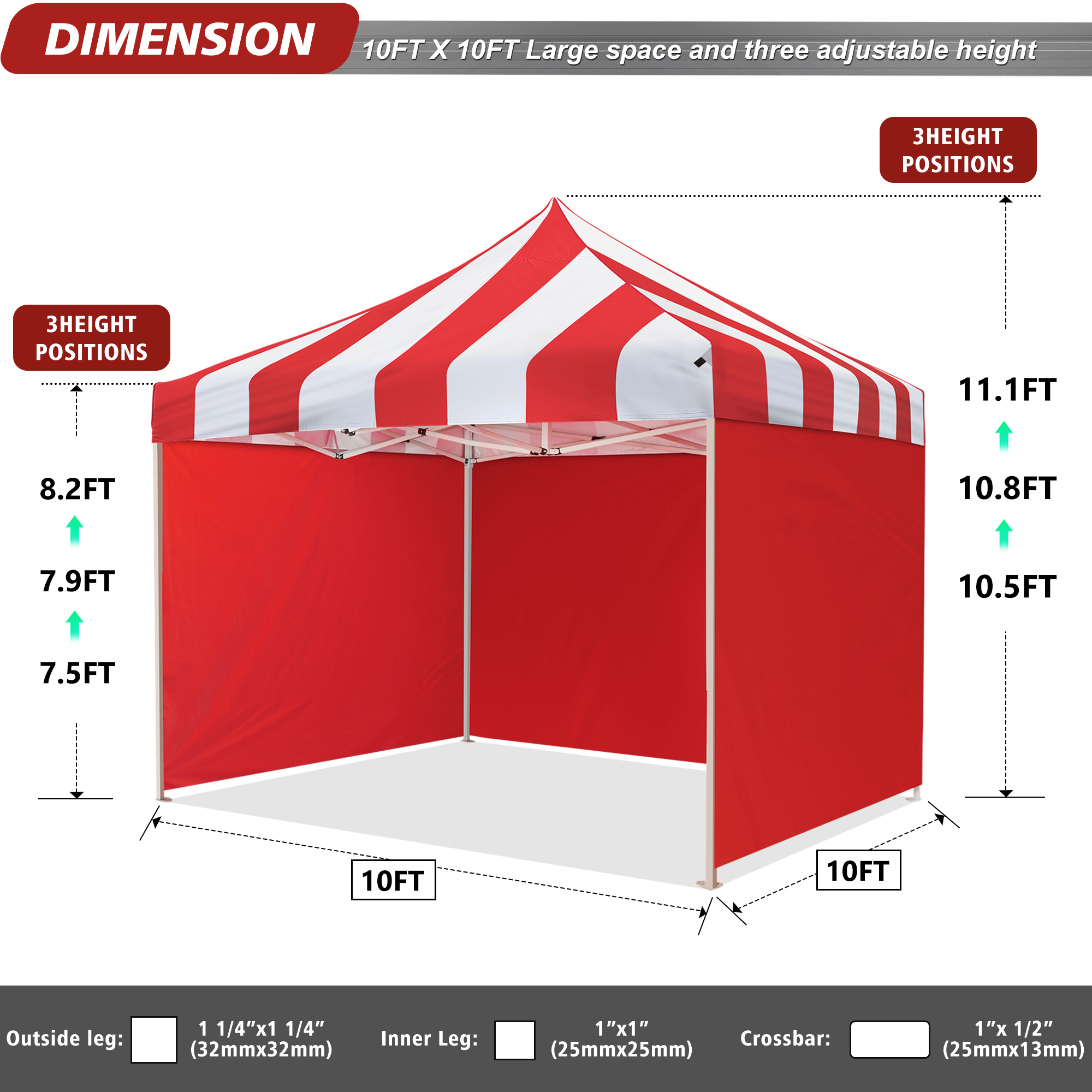 VentuLodge 10×10 Pop-Up Canopy Tent, Commercial Grade Heavy Duty Canopy with Striped Top and Sidewalls, Red