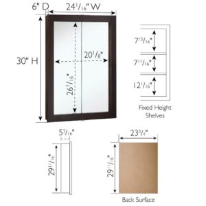 – Medicine Cabinet Dimensions: Bathroom Cabinet measures 24 inches W x 6 inches D x 30 inches H with 2 mirrored doors and 2 stationary shelves