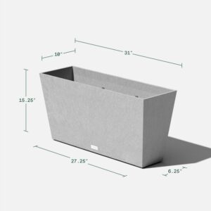 Featuring a long, trough-like design, the Veradek Midori Planter enhances privacy in any space whether it s the patio, garden or backyard. Complemented by its modern appearance, the Midori is thoughtfully curated with versatility in mind pre-drilled drainage holes allow you to plant a variety of different greenery such as tall grasses, flowers, or even vegetables without having to worry about overwatering. This sturdy yet lightweight rectangular planter is proudly crafted in Canada from high-grade recycled plastic, making it resistant to cracks, fading and UV and allowing it to withstand extreme temperatures ranging from -20 to +120 degrees. With the ideal balance of design, structure and purpose, the Midori is made for any project, indoor or outdoor.