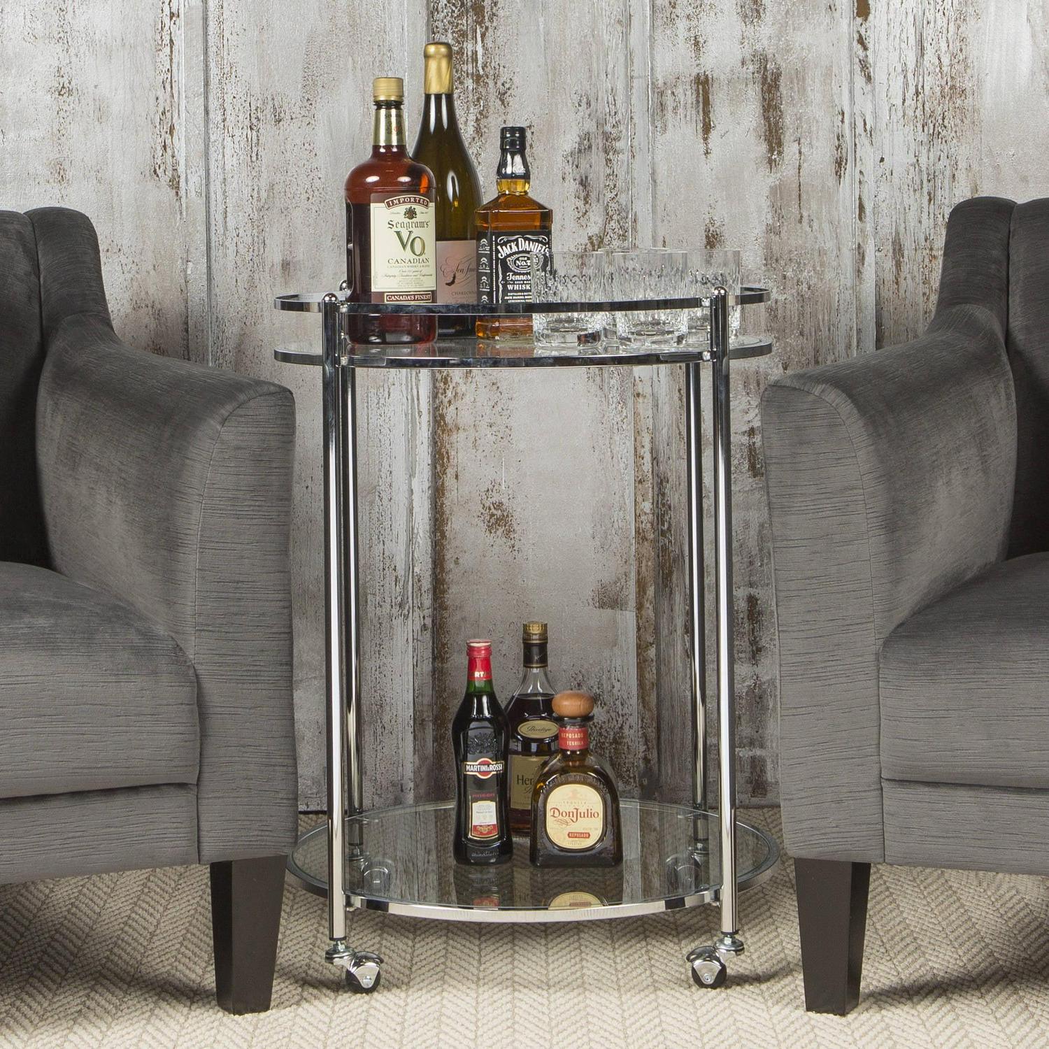 Veranda 2-Tier Modern Mobile Metal Frame Tempered Glass Round Bar/Serving Cart for Kitchen Dining or Living Room