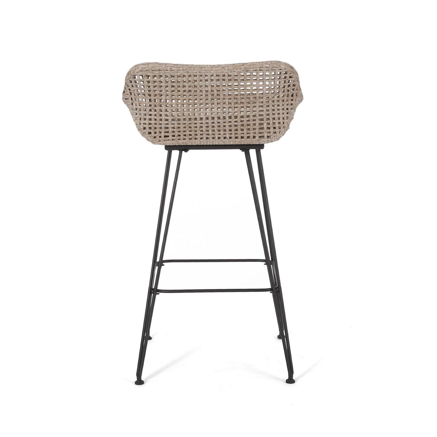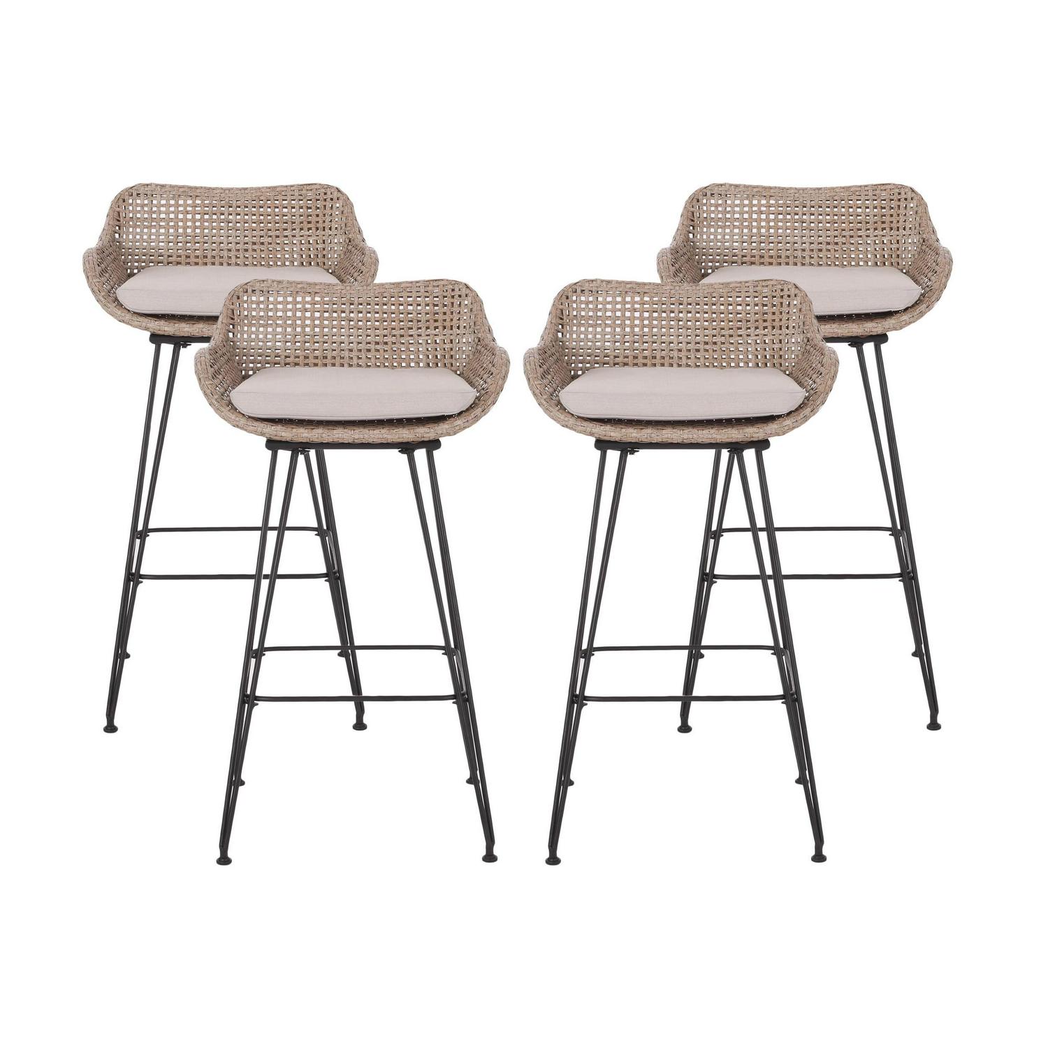 Verano Wicker and Iron Outdoor Barstools with Cushion, Set of 4, Mixed Brown and Beige: