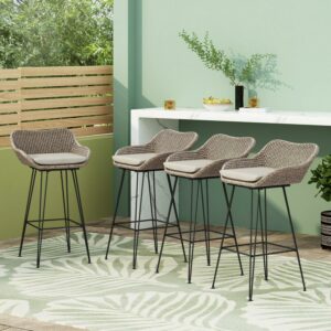 Verano Wicker and Metal Outdoor Barstools with Cushion, Set of 4, Mixed Brown and Beige