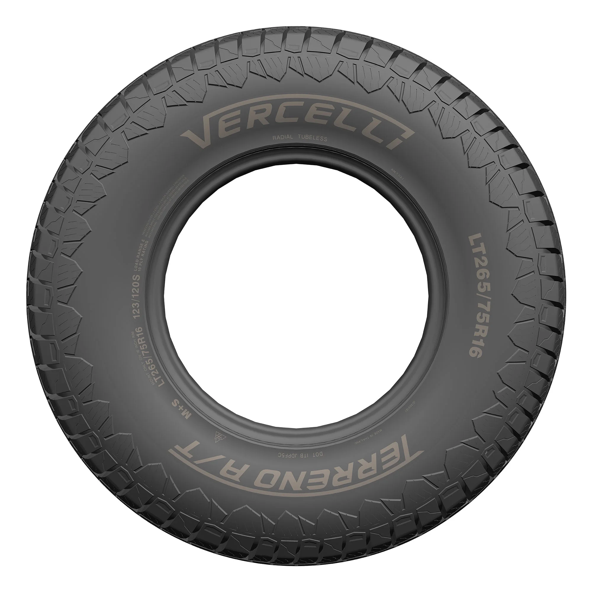 Vercelli Terreno A/T LT285/75R16 126/123S E OVERVIEW The Vercelli Terreno A/T is an all-terrain tire that’s meant for use on SUVs, light trucks, and Jeeps, and features a dual pitch tread pattern that enhances traction and performance on- and off-road. Backed by a 50,000 mile limited manufacturer tread life warranty, the Terreno A/T’s offset chevron grooves bite into mud, dirt, and other soft surfaces to further boost off-road traction.