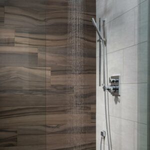 - Includes 60″ – 82″ stretchable metal hose for extended reach within the shower