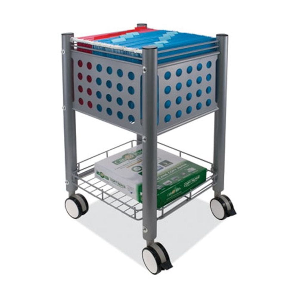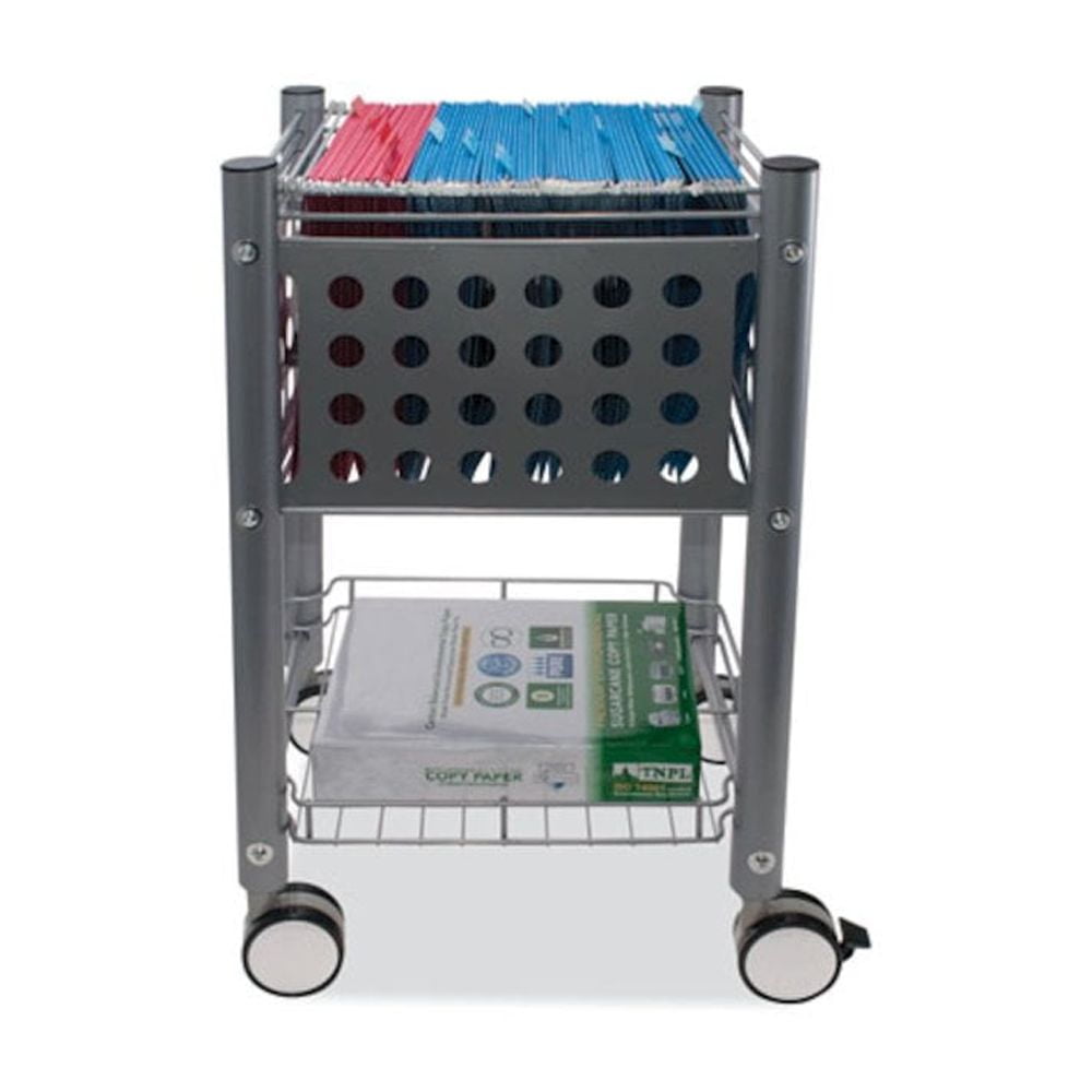 Sold as 1 Each. SmartWorx Sidekick File Cart holds letter-size hanging file folders and transports them where needed. Bottom shelf holds paper and supplies. Made of durable steel and wire construction. Mobile deskside file cart moves on four twin-wheel casters (two locking).