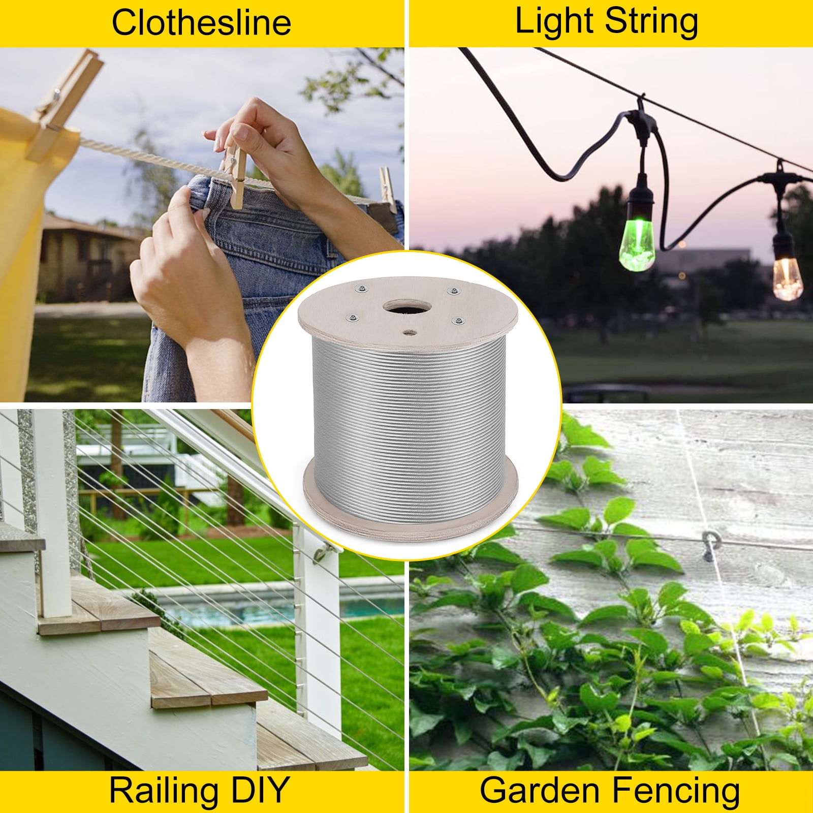 【DURABLE MATERIAL】- Made of 304 stainless steel material, durable, stable, anti-corrosion, anti-fatigue. Designed for decades use. 【LARGE BREAKING STRENGTH】- Breaking Strength of our cable wire rope is up to 5780LBS. Perfect for indoor and outdoor use. 【7 X 19 CONSTRUCTION】- Nineteen groups of seven wires which formed helical around a strand core. Designed for long-lasting use. 【HIGHLY POLISHED SURFACE】- Its surface is smooth, highly polished and has no burr. Come with 200Ft standard length that can be quickly trimmed to size in the field. 【WIDE USE】- Can be used for rigging, hoisting, push-pull, and guying applications. Used in coal, petroleum, chemical industry, shipbuilding, bridges, electricity, military, tourism, light industry and other industries.