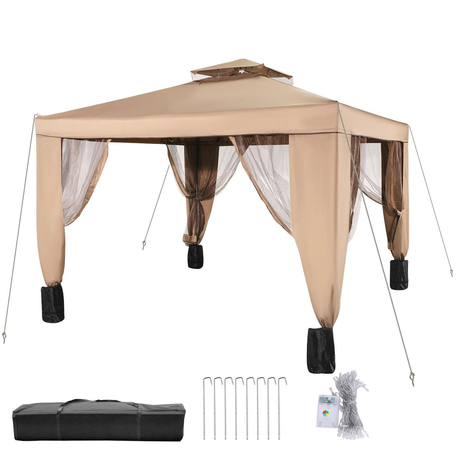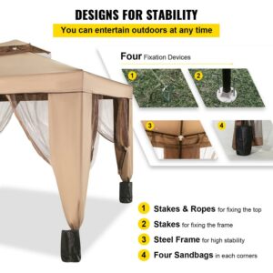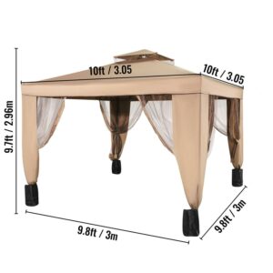 VEVOR 10x10ft Outdoor Intubated Canopy Gazebo Starter Kit, Equipped with Four Sandbags, Ground Spikes, Netting, Ropes, Carrying bag – Portable Brown Tent for Backyard, Patio and Lawn, Basic Version