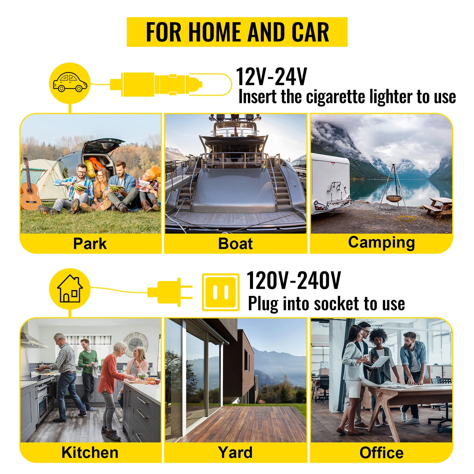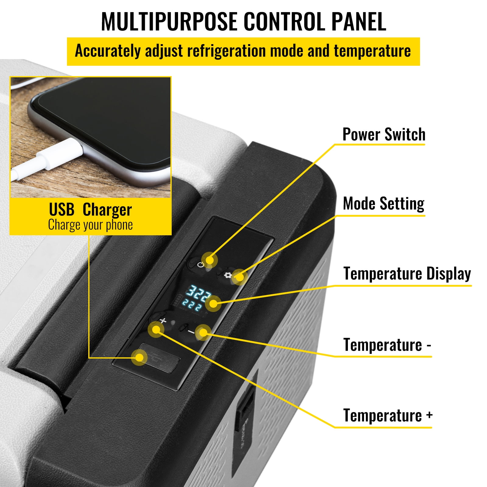 Efficient Refrigeration: With compressor refrigeration technology, this 12V car freezer can achieve fast cooling from 68℉/20℃ to -4 ℉/0℃ in 15 minutes, keeping your food fresh. There are two modes for you to choose from: the ECO mode for energy-saving efficiency or the MAX mode for fast cooling. Temperature Control at Your Fingertips: You can accurately choose the mode and effortlessly control the temperature of the refrigerator thanks to its touch screen control panel. The temperature inside the refrigerator can be observed at any time during use. In addition, there is a USB interface at the bottom of the display, which allows you to charge your mobile phone. Perfect Structure: Our car refrigerator is made of frosted material, which is tough, durable, and wear-resistant. The sealing gasket of the door cover ensures that the refrigerator will remain sealed and prevents cold air from flowing out. The convenient door buckle allows you to open the refrigerator door effortlessly; multiple air vents accelerate heat dissipation. Secure Driving: Our car fridge is equipped with 120/240V AC and 12/24V DC adapters, so you can move the camping fridge seamlessly from home to vehicle. The three-layer battery protection can keep the refrigerator from depleting the vehicle’s battery. It is designed to produce low noise and ensures you will sleep well after driving for a long time. The fridge is even stable when tilting 45°. Extensive Usage: This 10Qt fridge freezer will fit snugly in your trunk, behind a car seat, or in the bed of a truck. You can take a 12V compressor fridge to any outdoor activity without worrying about bumpy roads or inclines. The car’s travel fridge is perfect for RVs, campsites, boats, camping, fishing, road trips, and other outdoor activities.