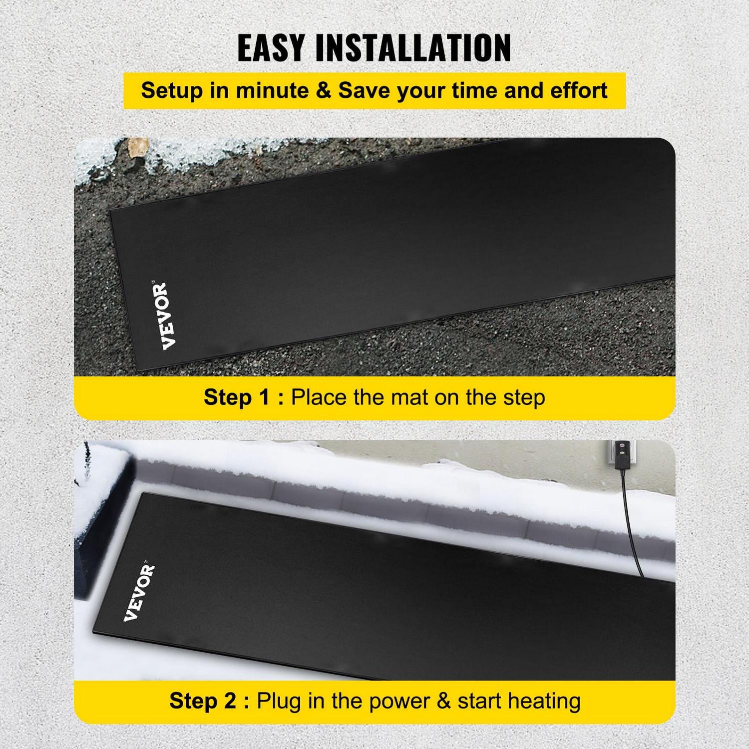 – Power Cord Included: This snow and ice melting mat come with a 6 ft power cord meant to fit your stairs. We designed the leakage-proof plug With UL Certification for your maximum security. Lightweight and portable.