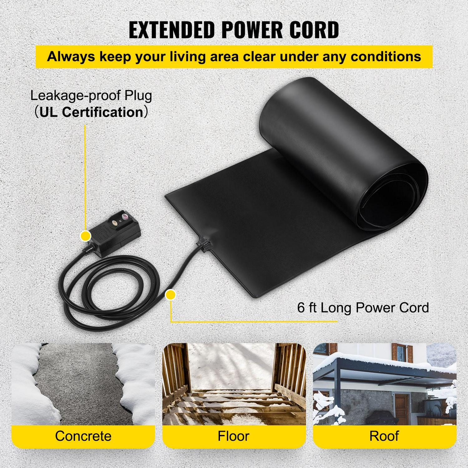 The 6 ft power cord is included, and the plug comes with leakage protection and UL certification. The heated mats for walkways save you effort a lot.