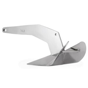 This delta style anchor is very easy to both set and recover. Stows easily on a bow roller.