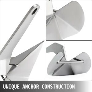 VEVOR 14 lbs 7 kg Stainless Steel Delta Style Boat Anchor Boats from 20-35 ft Heavy Duty Triangular Anchor