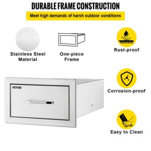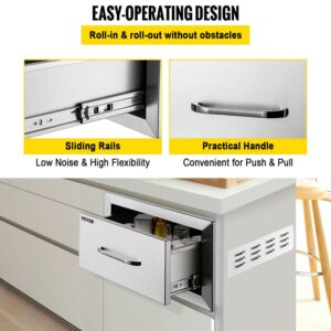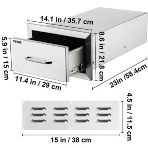 VEVOR 14×8.5 inch Outdoor Kitchen Drawers Stainless Steel, Flush Mount Double Drawers,14W x 8.5H x 23D Inch, with Stainless Steel Handle, BBQ Drawers for Outdoor Kitchens or BBQ Island