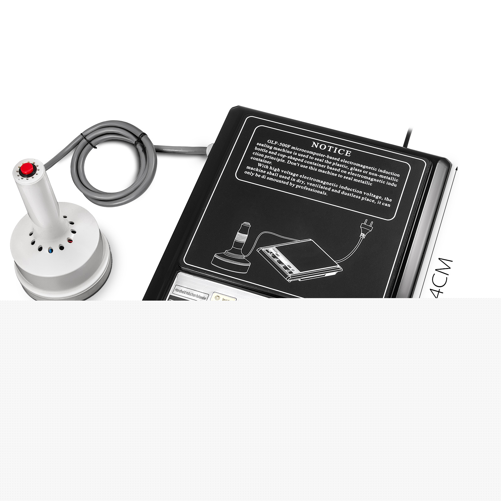 The induction sealing machine enables to seal non-metallic bottles with aluminium foil under the electromagnetic induction device. It works by applying instant high heat to the foil that needs to be melted in order to seal the bottle. It seals in a matter of seconds and preserves and protects whatever is stored inside.The sealing diameter range is from 20 mm to 100 mm. Sealing power is 800-1200 W. High power could improve sealing speed and low power could get better sealing quality, which depends on your sealing needs. Efficient and convenient.