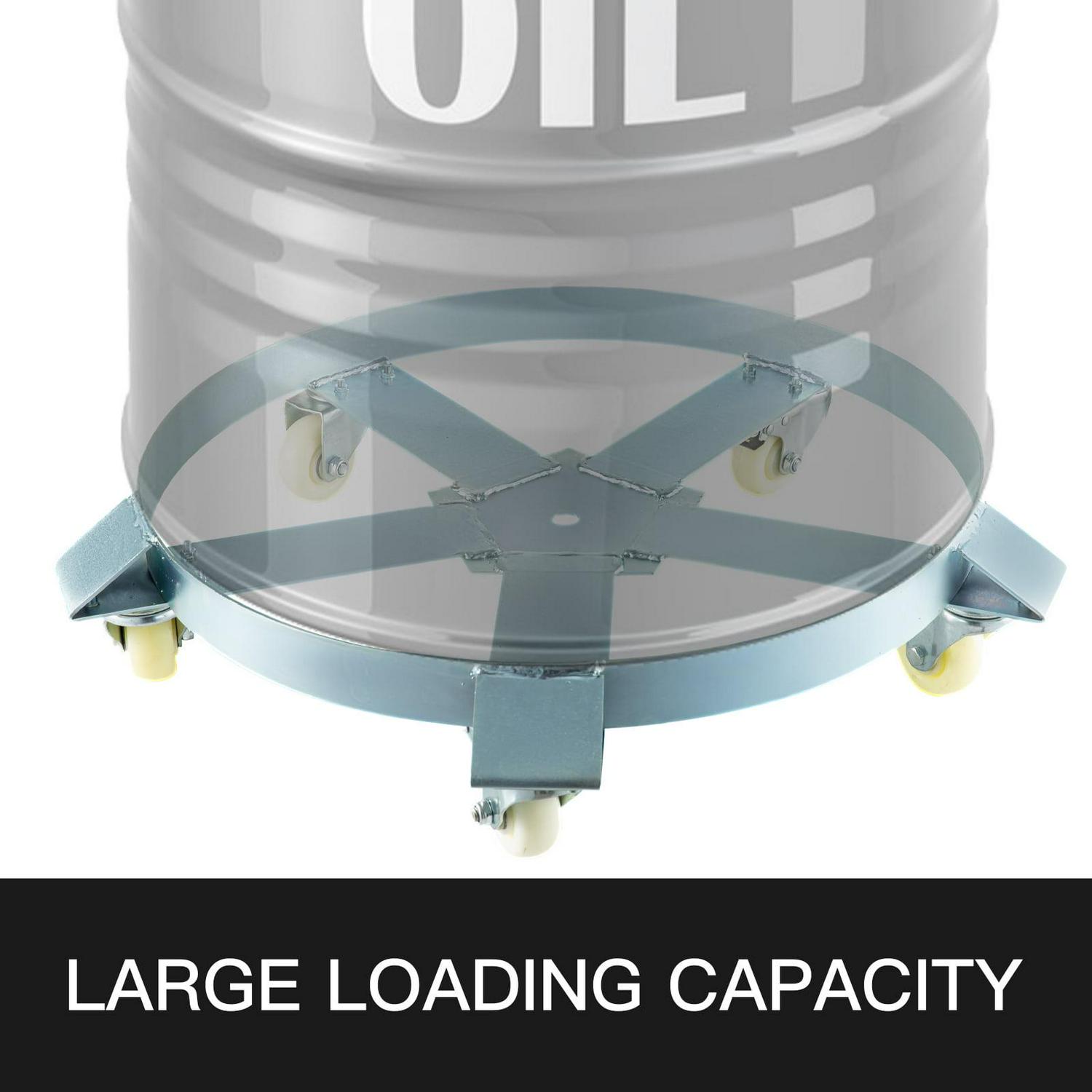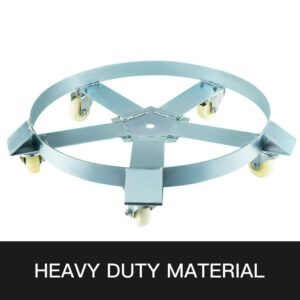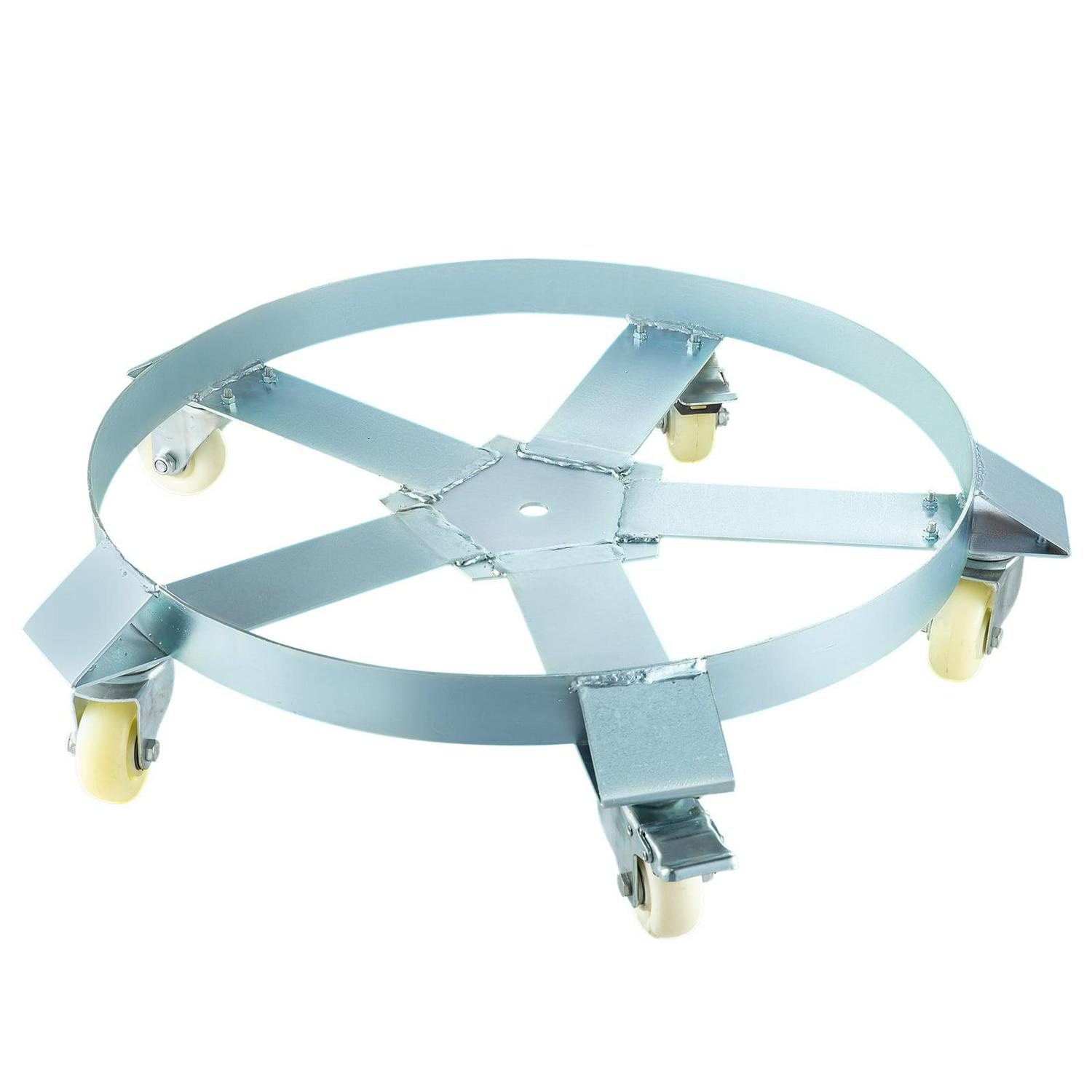 Premium heavy duty 55 gallon drum dolly, designed tough and made from the highest quality materials. Five durable wheel casters provide stability and easy pushing, and the cross strap design prevents warping and tipping and helps keep your load secure. Great for shops, garages, factories, warehouses and more.