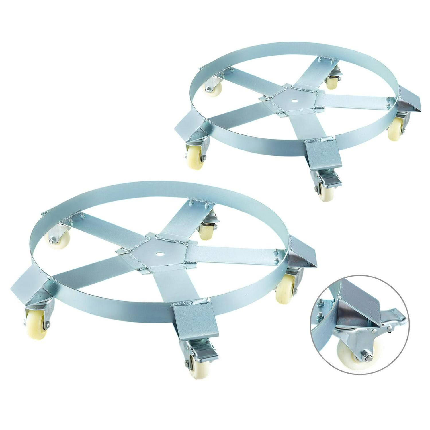 VEVOR 2 Pack Heavy Duty Drum Dolly 5 Swivel Caster Wheel 55 Gallon Steel Frame Non Tipping with Brake