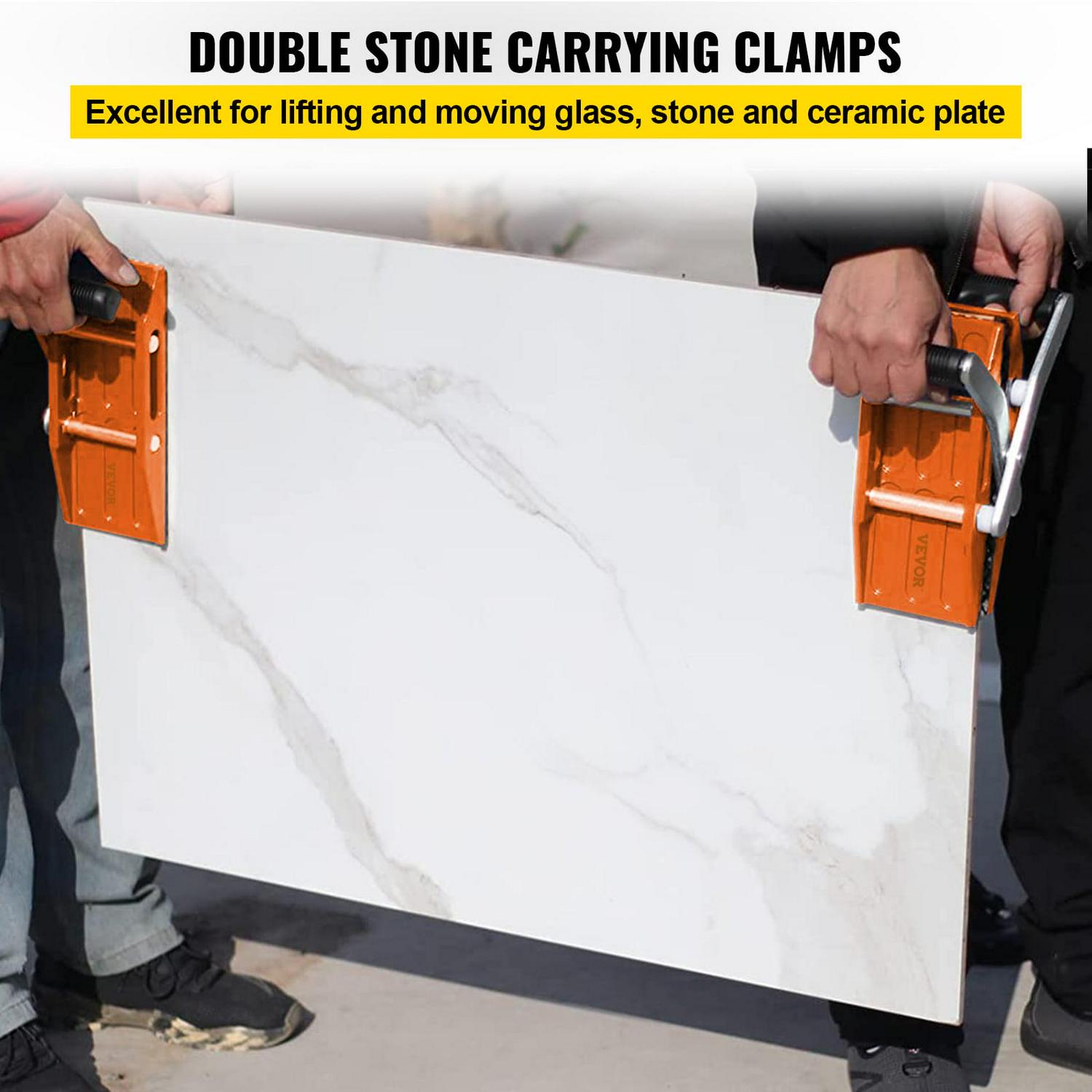 VEVOR 2 PCS Double Handed Stone Carrying Clamps, 1.97 inch (50mm) Granite Lifting Tools with Slip-proof Rubber Pads, 440 lbs Loading Capacity for Moving Marble, Glass, Slabs and Plywood