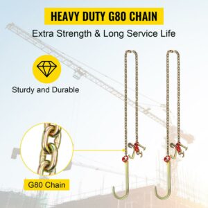 VEVOR 2 pcs J Hook Chain, 5/16in x 10ft Tow Chain Bridle with 15in J Hooks, Grade 80 J Hook Transport Chain, Heavy Duty 9260 lbs Break Strength