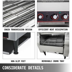 VEVOR 2200W Commercial Conveyor Toaster,300PCS/Hour 110V Heavy Duty Stainless Steel Toaster for Restaurant Breakfast, Sliver