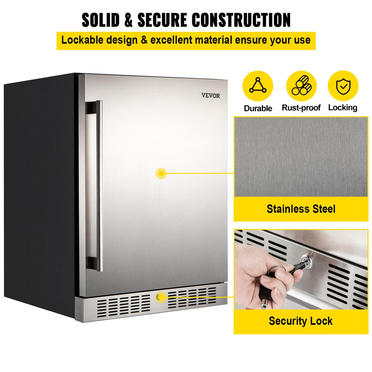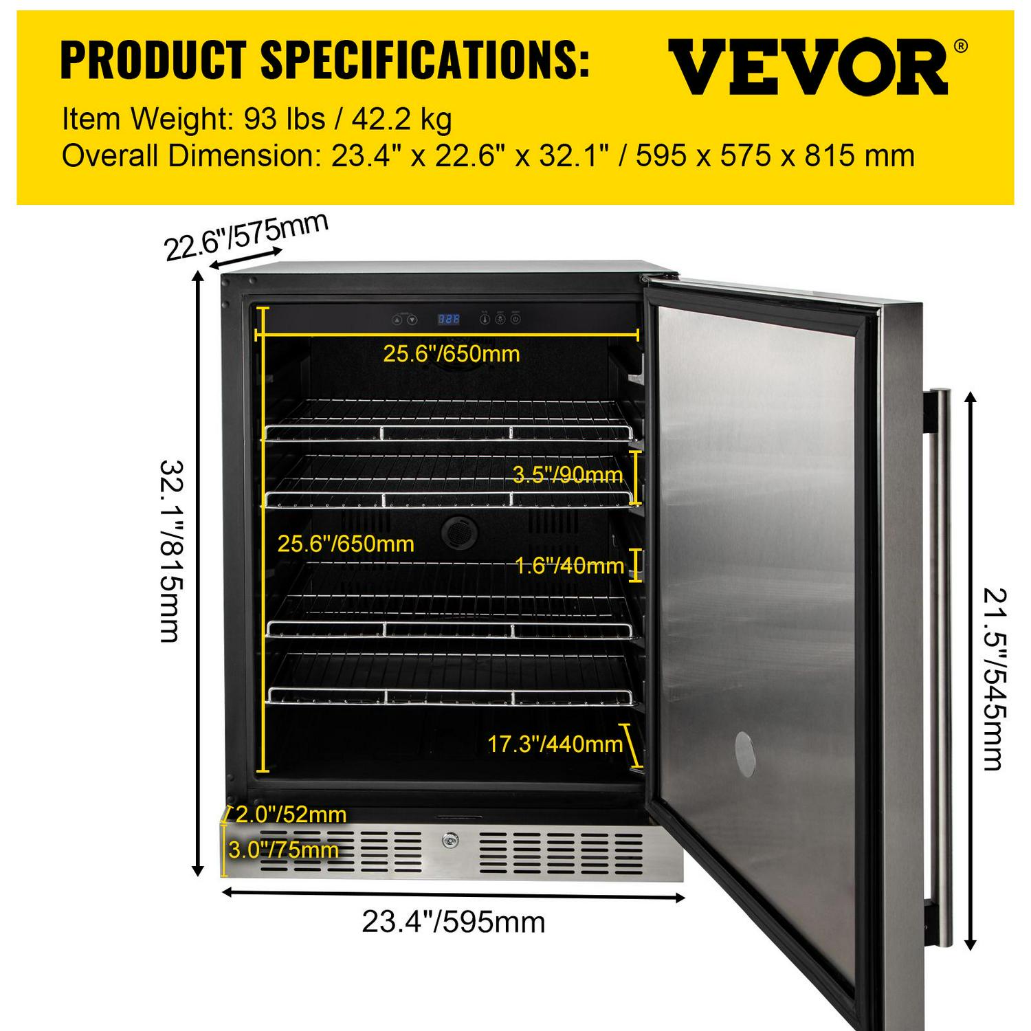 VEVOR 24” Built-in Beverage Cooler 5.5 cu.ft. Small Reversible Door Refrigerator 142 Can Beer Fridge for Home Bar Office Commercial Outdoor Indoor Use, 150L, Black and Silver