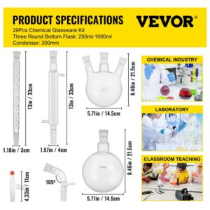 VEVOR 29pcs 24/40 Joints Lab Glassware Kit Organic Chemistry Lab Glassware Set Laboratory Condenser Essential Lab Equipment
