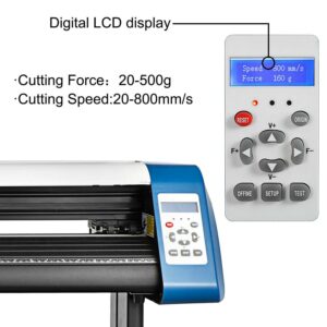 – DIGITAL PRECISE CONTROL – The plotter cutter vinyl comes with an illuminated LCD screen and a large control panel. With cutting pressure 20-500g adjustable, and cutting speed 20-800 mm/s adjustable.