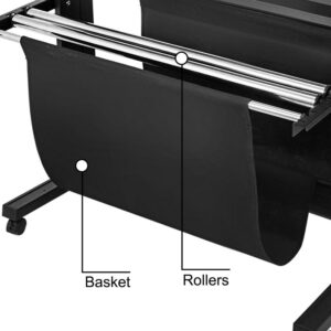 Structure with heavy-duty sheet metal floor stand, featuring 2 rollers that can hold the paper. Also, with a paper basket for preventing the material from falling to the ground.
