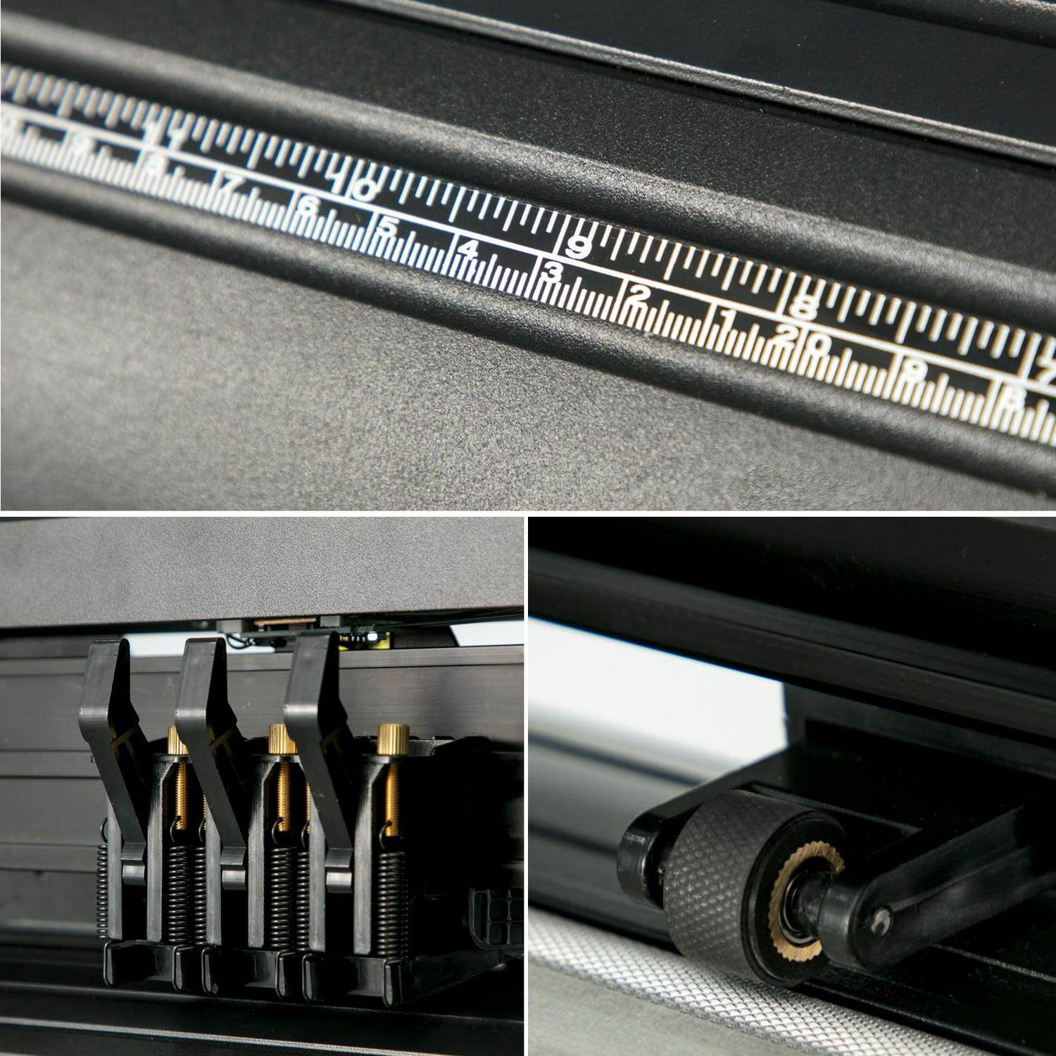 3 adjustable double-spring pinch rollers, aluminum knurling stick, high precision pressing wheels, and scale line ensure the anti-deviation of paper feed by long distance.