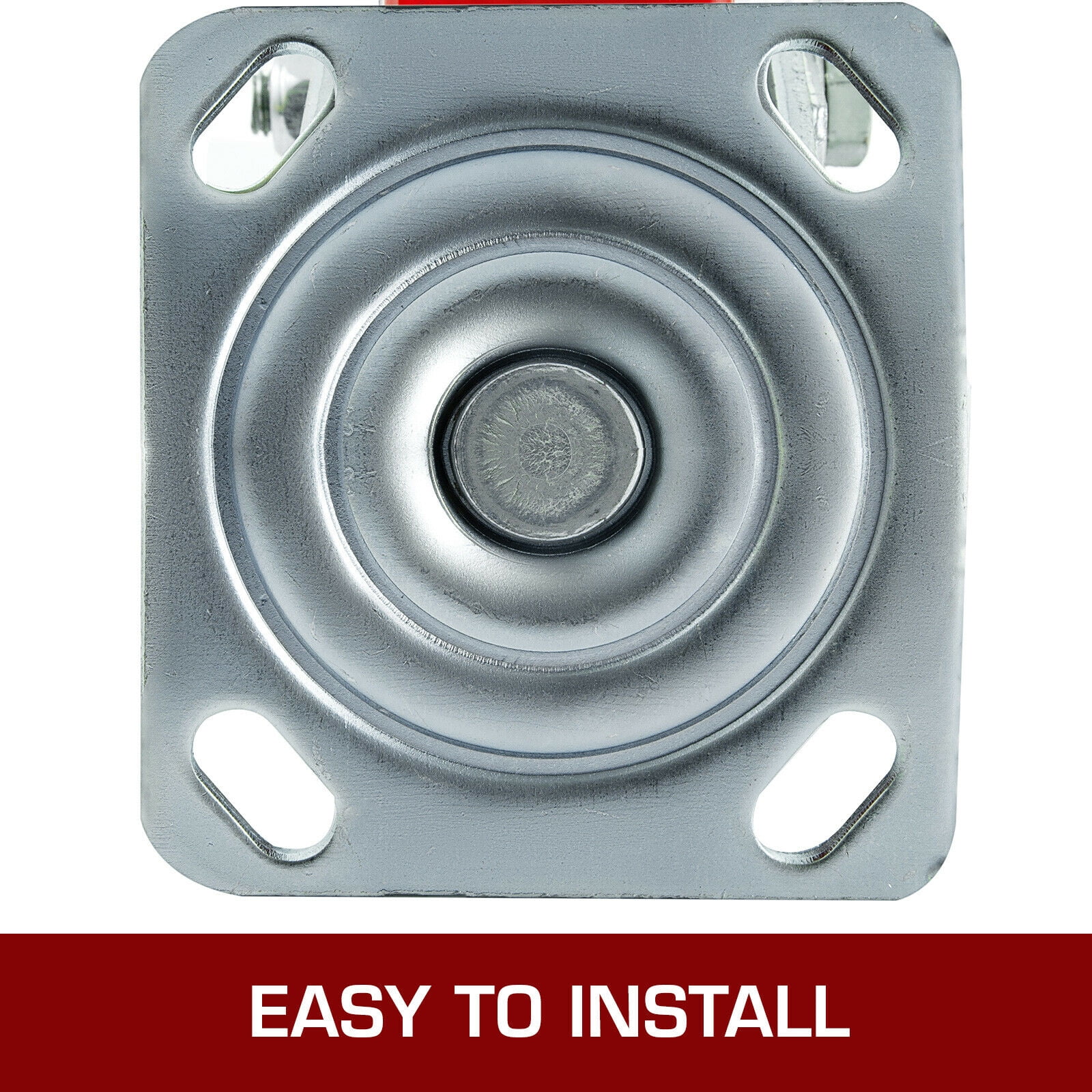 Brand Introduction VEVOR is a leading brand that specializes in equipment and tools. Along with thousands of motivated employees,VEVOR is dedicated to providing our customers with tough equipment & tools at incredibly low prices. Today, VEVOR has occupied markets of more than 200 countries with 10 million plus global members. Why Choose VEVOR? 1.Tough Quality Assurance 2.Incredibly Low Prices 3.Fast & Secure Delivery 4.30-Day Free Returns 5.24/7 Professional Customer Service Product Description 6″ x 2″ Polyurethane 2 Rigid & 2 Swivel Casters The highest quality industrial grade caster wheels made of non-marking polyurethane rubber type, can roll smoothly and silently on any floors. Two wheels can be locked by the side brake. Steel structures body is extremely hard wearing and resistant to dirt. 1000 lbs capacity for each caster. It can provide instant mobility for stationary objects in your workshop, garage, warehouse, kitchen, offices and much more. 2 Rigid & 2 Swivel Casters Including 2 rigid casters that can go straight in one-way. 360° rotation design in other two casters make the wheels flexibly transform any directions. Side lock mechanism can make the wheels stop moving. High Quality Polyurethane Wheels The wheels made of the popular non-marking polyurethane rubber type, absorbs shock and vibrations, wear-resistant and roll silently on any surface without leaving any scratch or scuff marks. Large Load Capacity Each caster can load capacity up to 1000lbs, four casters can up to 4000lbs. Equipped with premium double deep-groove ball bearings, ensure light pushing and save strength for the toughest jobs. Thickened Steel Plate Bracket 5.5mm thickened galvanized steel plate bracket, corrosion resistant and anti-dust, make the caters more stable, safe and solid for long service life. The anti-loosening nut can make the bracket more sturdy. Easy To Install The top plate has four mounting holes for easy and convenient installation, adopting scientifically measued, four hole positioning allows the casters firmly fasten objects, not easy to fall off. Wide Application Can be used in both industrial and residential applications. Widely used in warehousing and logistics, industrial equipment, medical devices, trolleys, hotel supplies, kitchen equipment, shelf toolbox and so on. Specifications Material: Polyurethane + Steel Brake Type: Side Lock Brake Top Plate Size: 4.5 x 4 x 0.2 inch Wheel Diameter: 6 inch Wheel Width: 2 inch Load Capacity : 1000 lb each Package Size: 13 x 10 x 8 inch Gross Weight: 15 kg/33 lb Package Content 2 Rigid & 2 Swivel Casters With Side Brake