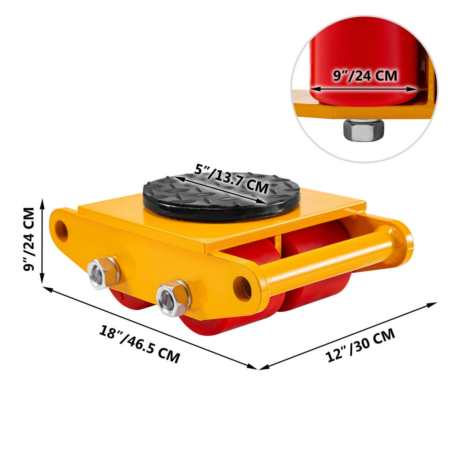 – 13,200 LBS LOADING CAPACITY – The industrial machinery mover can hold a load of 13,200 lbs. Overall Size: 18″x12″x9″. Seamless welding makes the overall construction safer and more reliable.