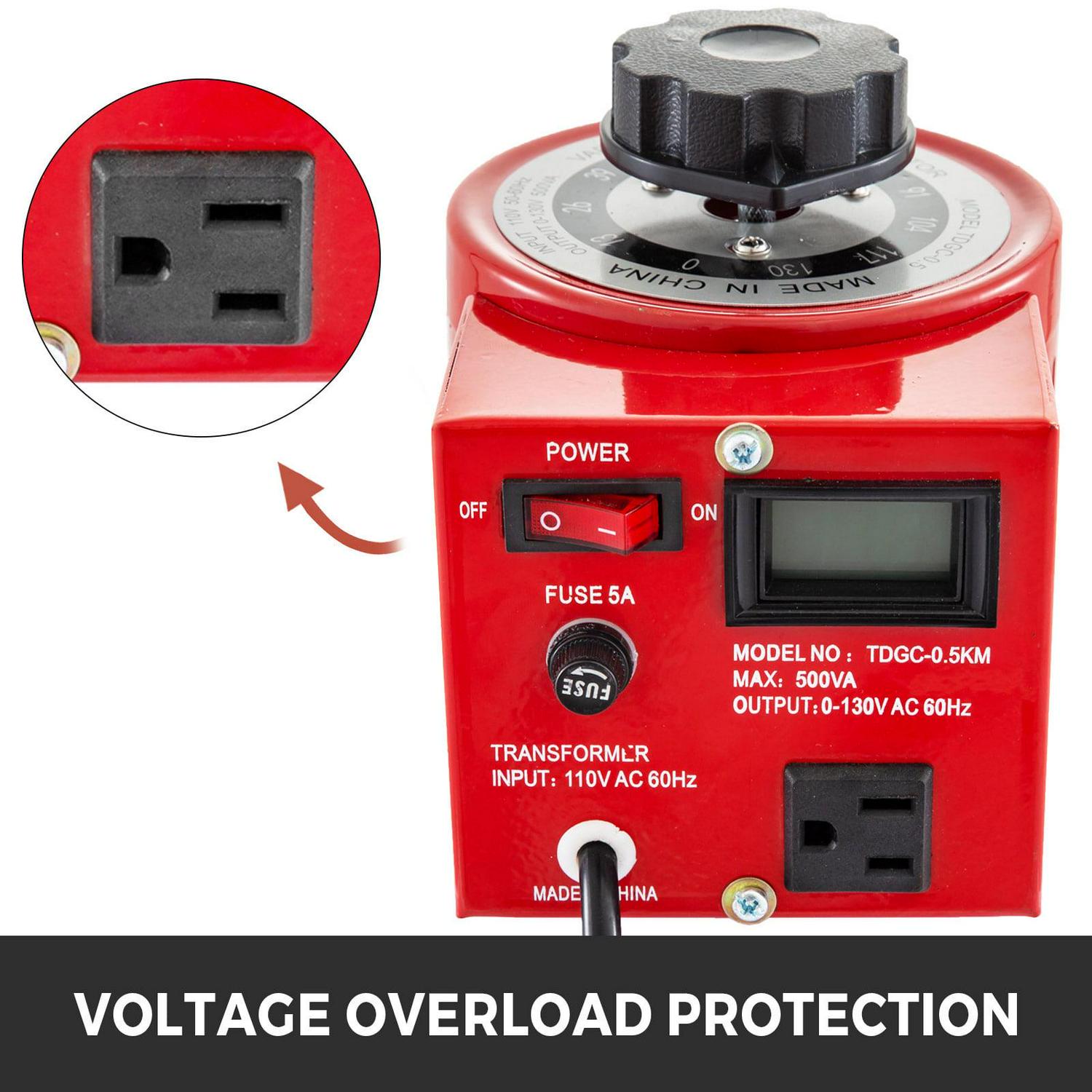 VEVOR 500VA Variable Transformer 110V 60Hz Input Voltage Digital Display 0-130V Output Automatic Voltage Regulator for US Plug