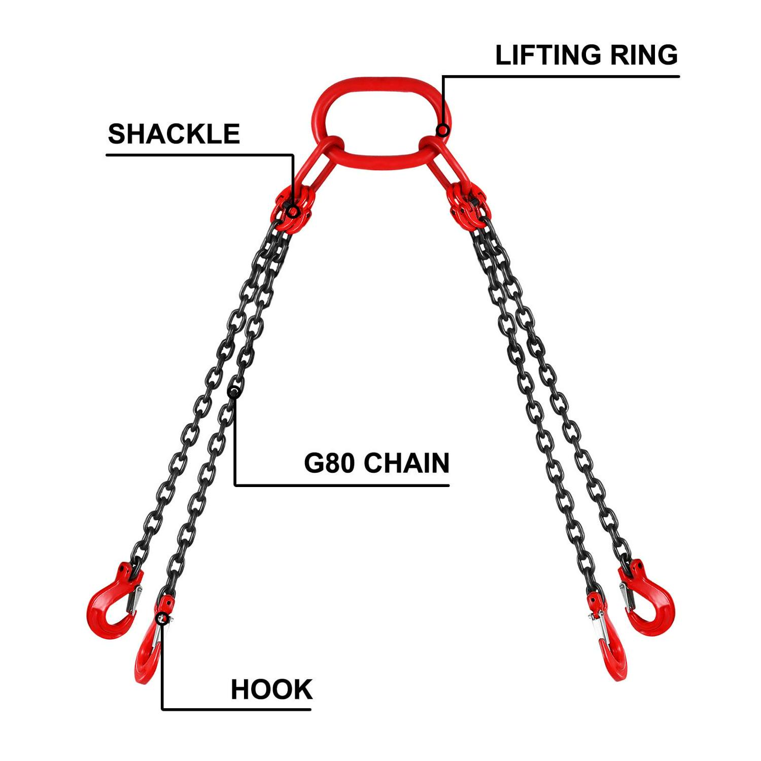 VEVOR 5ft Chain Sling 4 Legs 5/16 X 5′ With Sling Hooks, Lifting Chain Sling G80 Alloy Steel