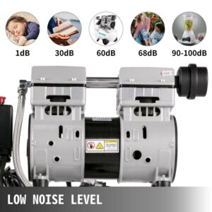 – VARIOUS USES – The quiet air compressor is the perfect unit for all of your inflation needs – home repair, tire inflation, cleaning floor heating, sheet metal painting, steel air gun, medical dentistry, etc.